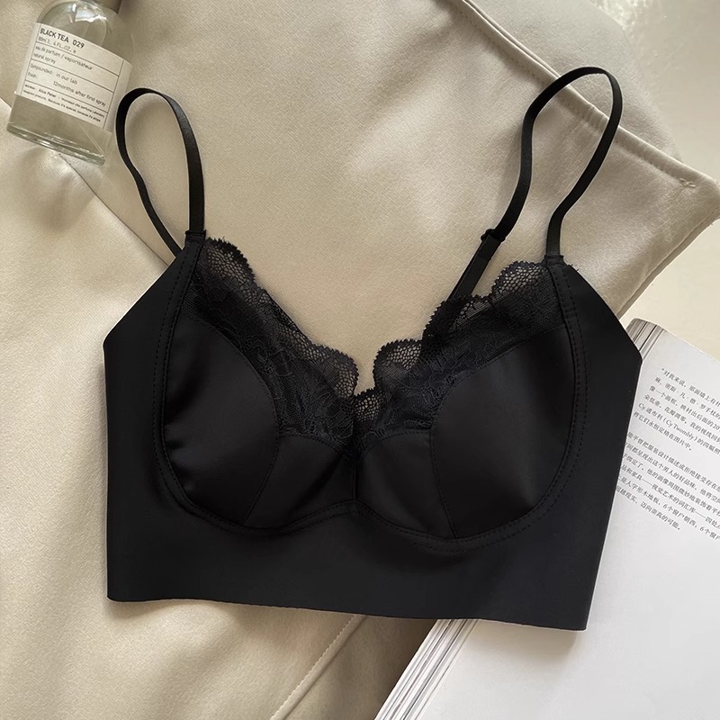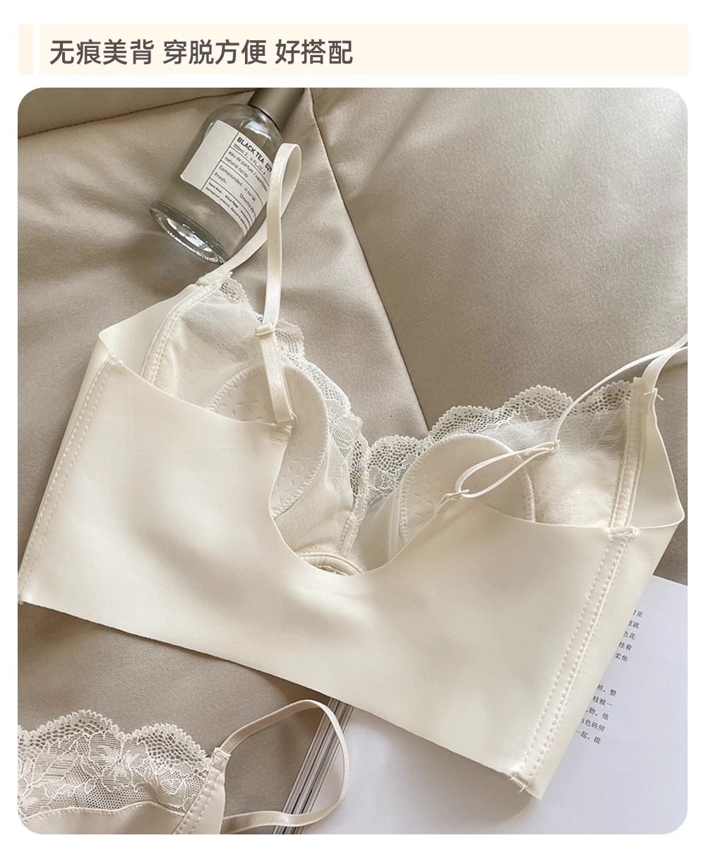 프랑스 스타일 섹시한 레이스 속옷 여성 빅 가슴 작은 경량 토끼 컵 트레이너리스 백 스트랩리스 여성용 브래지어 여름스토어 가기