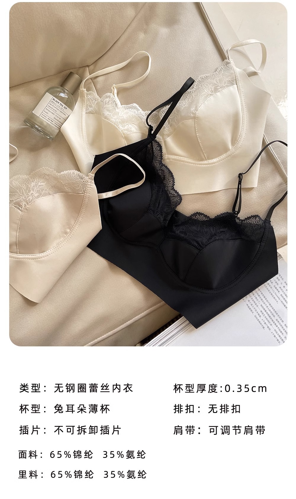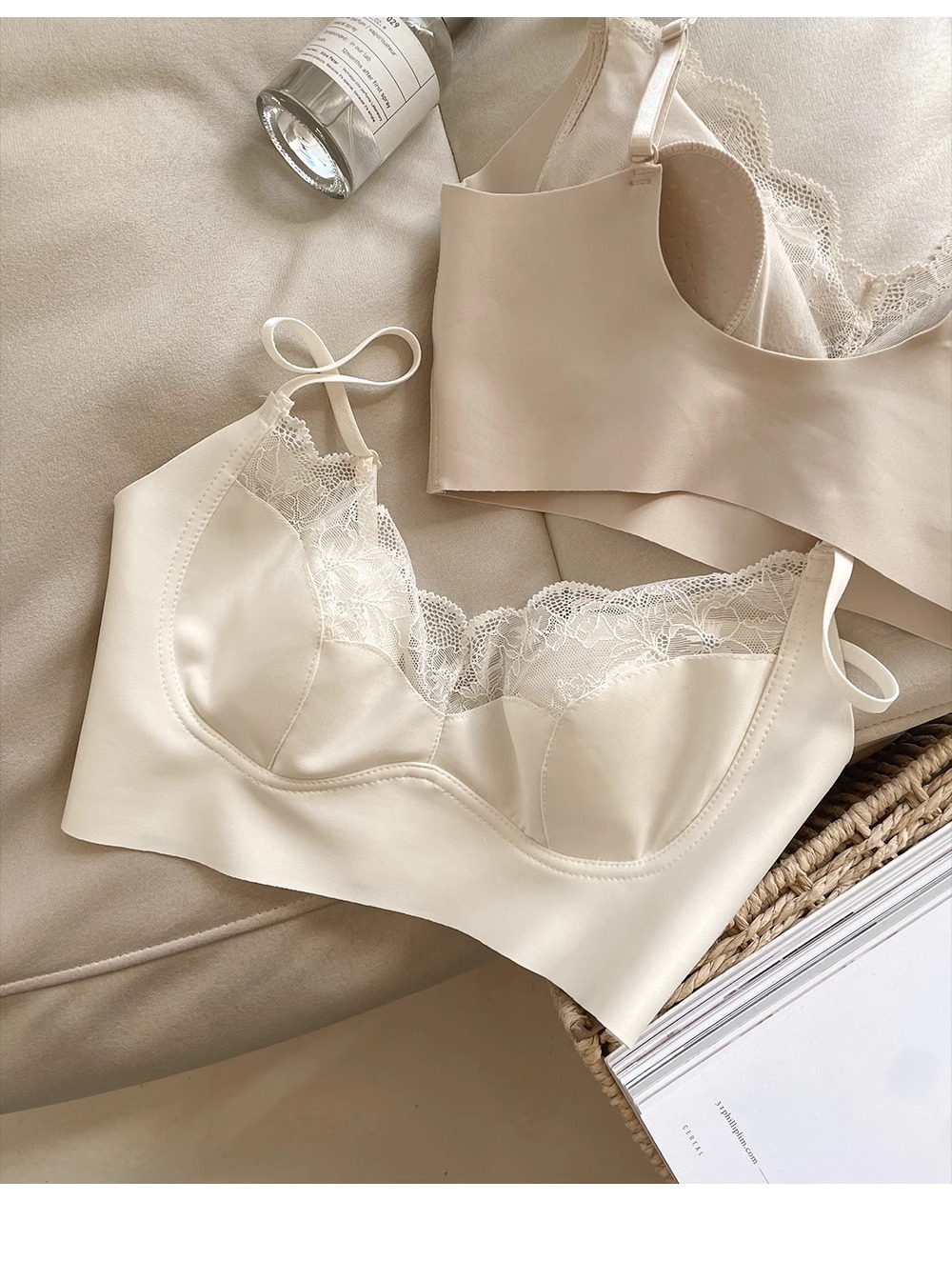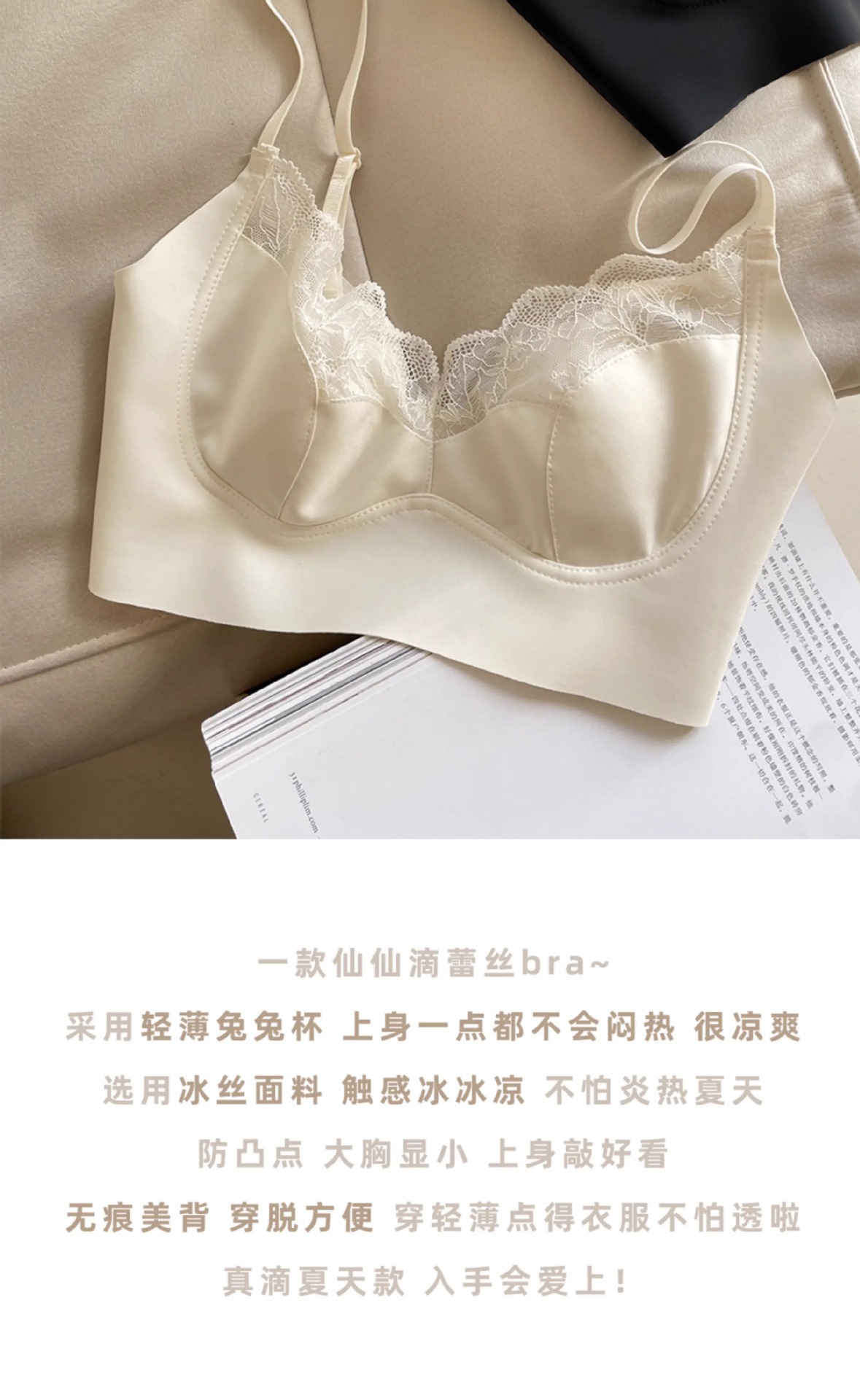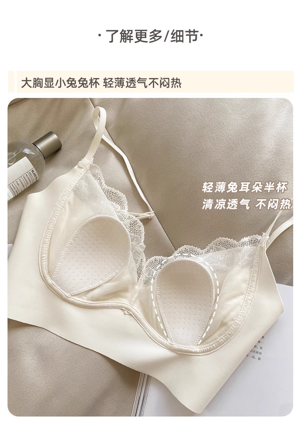 프랑스 스타일 섹시한 레이스 속옷 여성 빅 가슴 작은 경량 토끼 컵 트레이너리스 백 스트랩리스 여성용 브래지어 여름