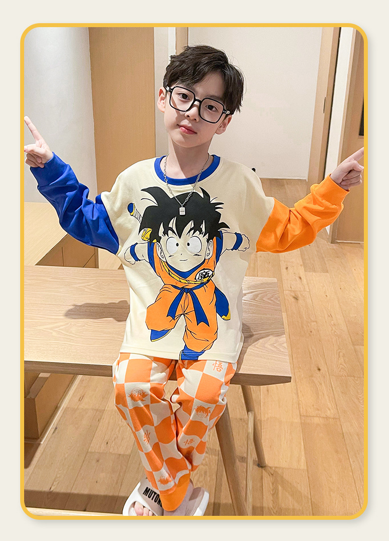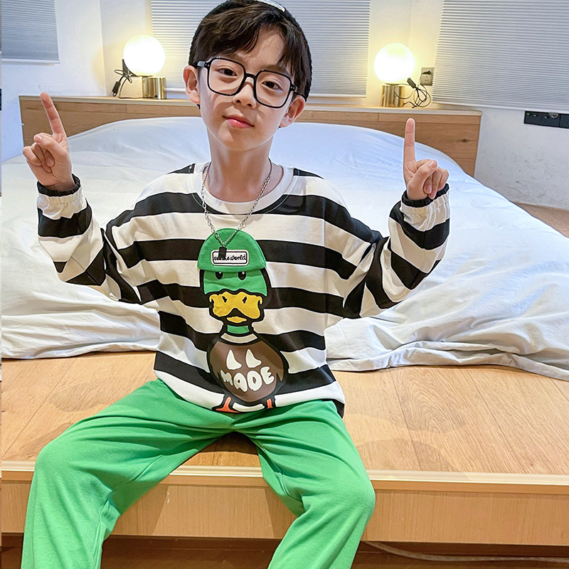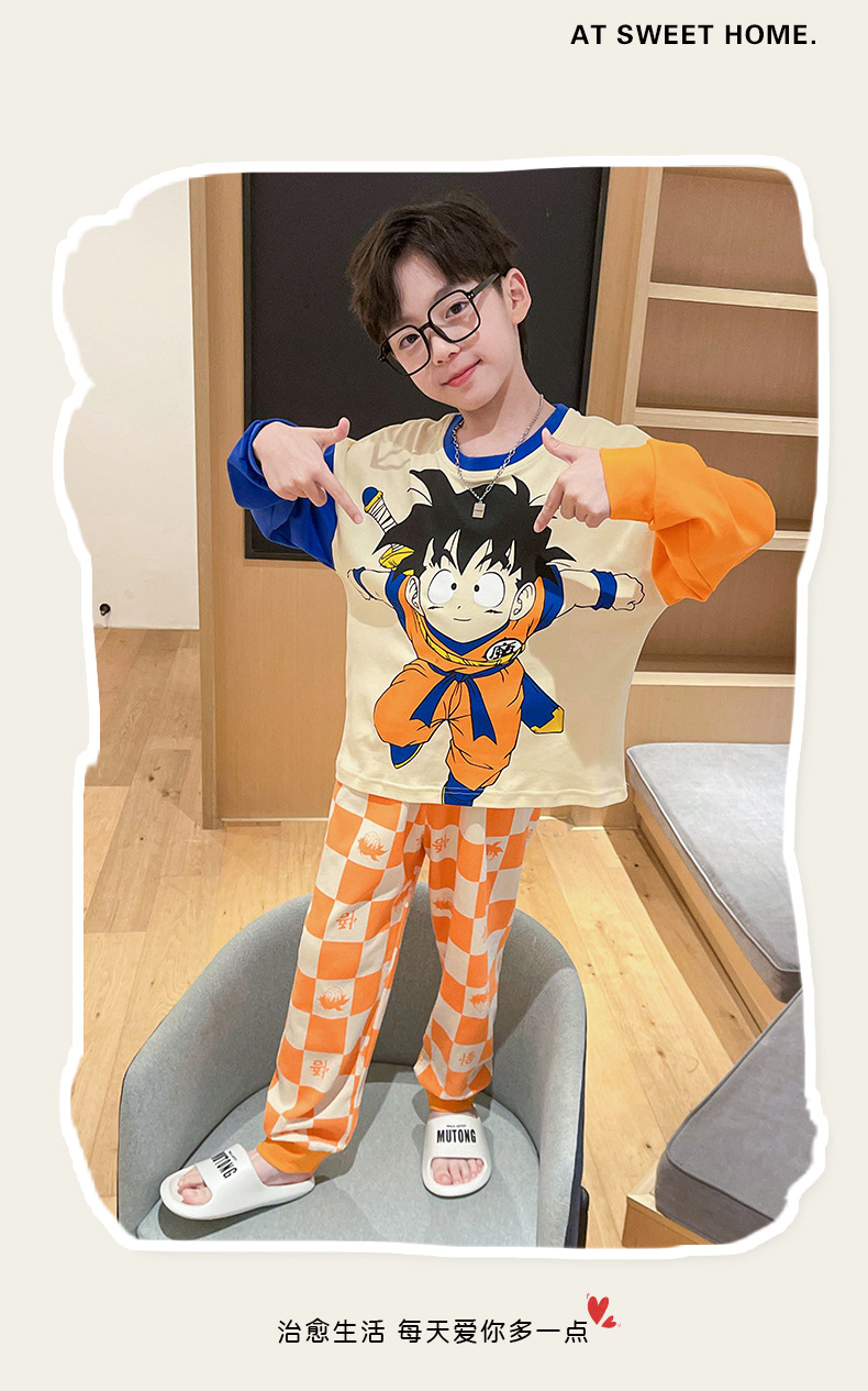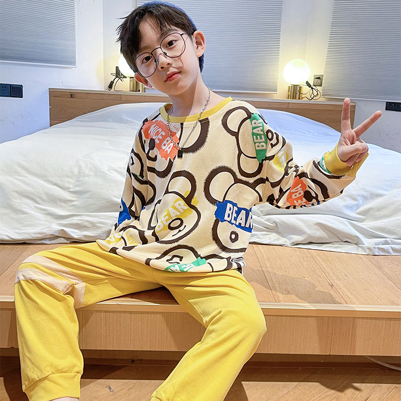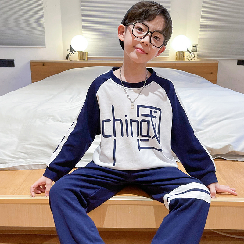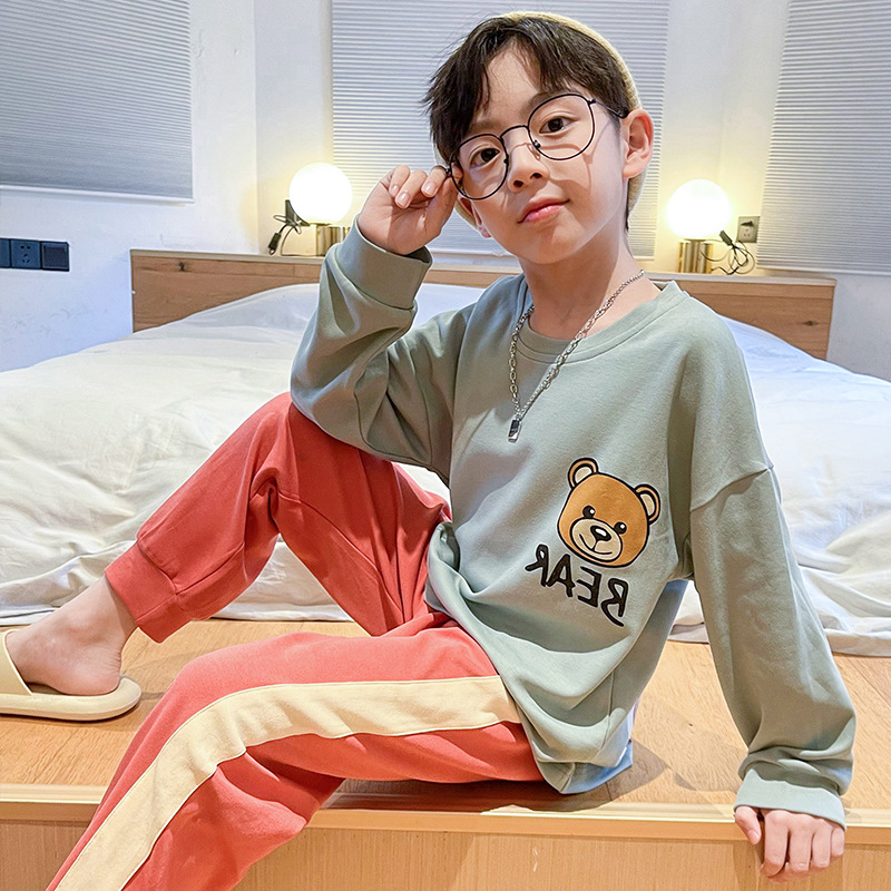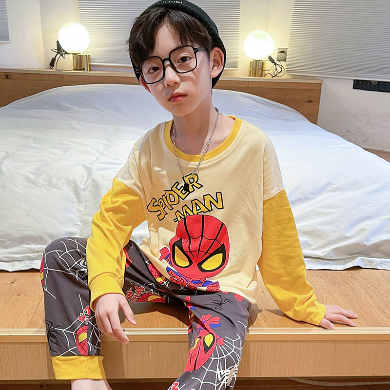 어린이 잠옷 소년 봄 가을 순면 긴바지 2024년 소년 만화 중대형 어린이 홈웨어 2024년 신상