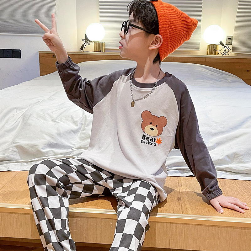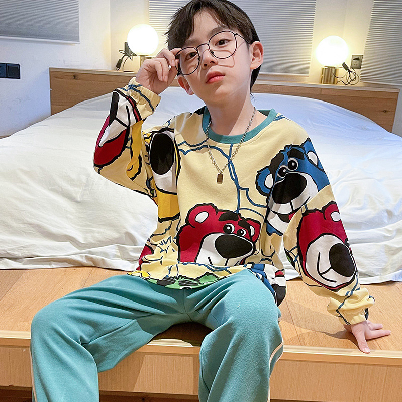 어린이 잠옷 소년 봄 가을 순면 긴바지 2024년 소년 만화 중대형 어린이 홈웨어 2024년 신상스토어 가기