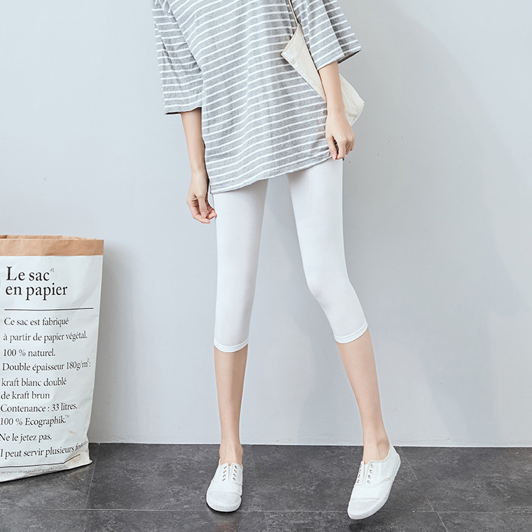 모달 레깅스 여성의 봄과 가을 아우터웨어 얇은 자른 바지 네이비 통통녀 플러스 사이즈 높은 허리 슬림 핏 바지