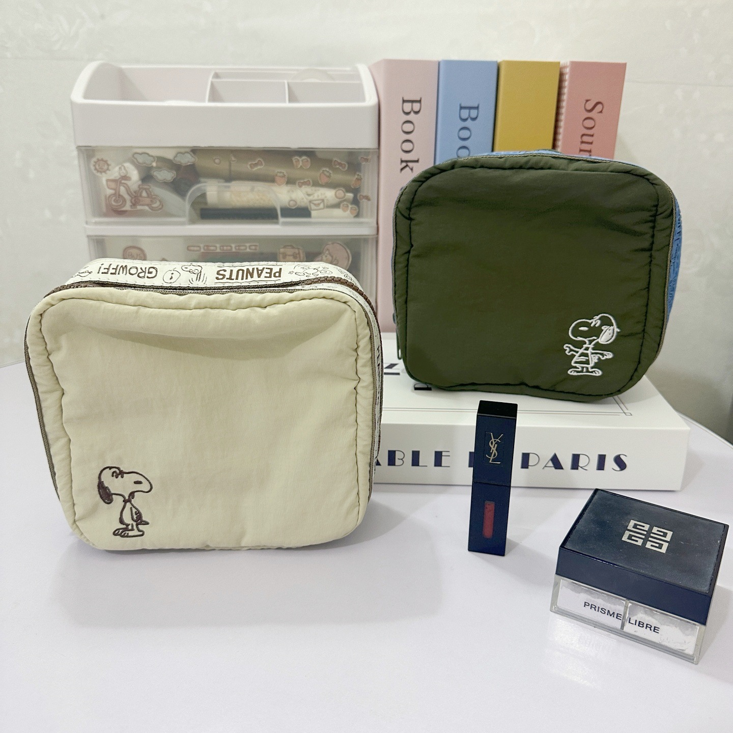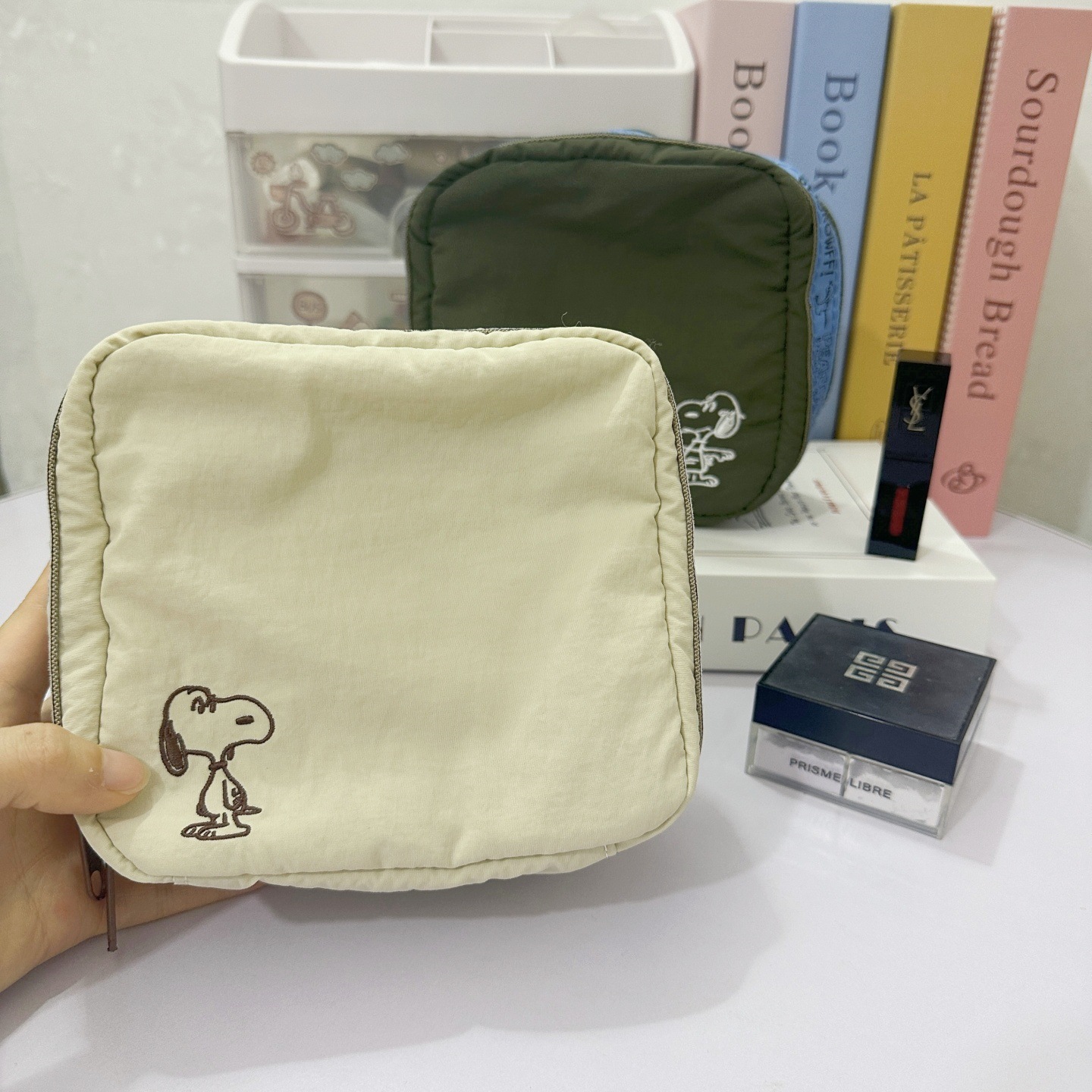 • 강아지 레트로 스퀘어 화장품 가방 베이지