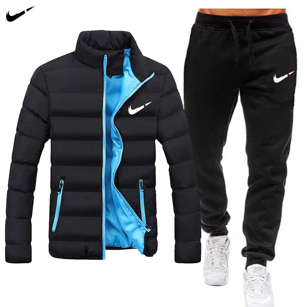남자 크로스 보더 칼라 코튼 패딩 재킷 바지 세트 겨울 두꺼운 따뜻한 캐주얼 양면 패딩 재킷 다운 재킷