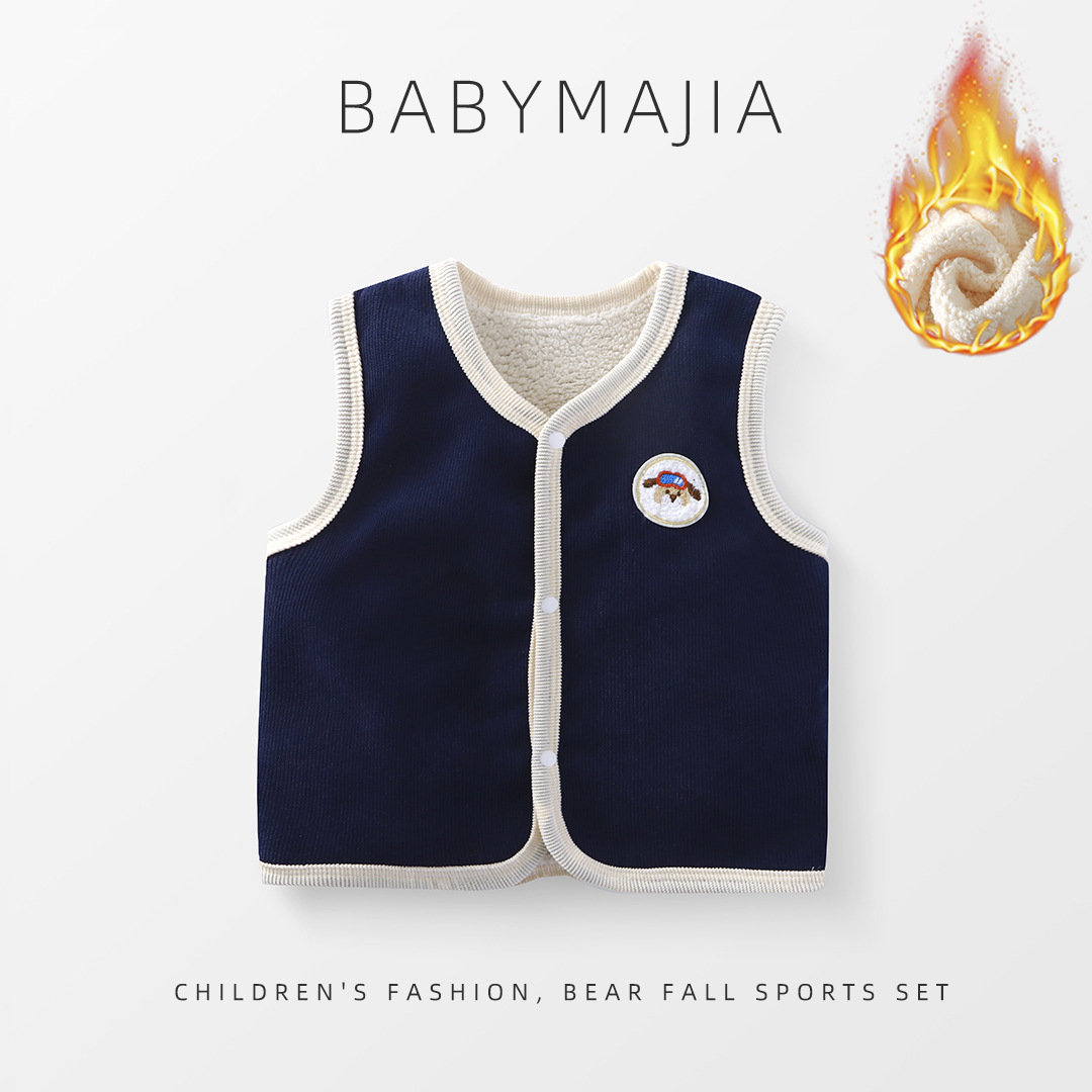 소년 소녀를위한 어린이 조끼 두꺼운 따뜻한 아우터 착용 코듀로이 가을과 겨울 기모 조끼 아기의 외부 왁스 코트