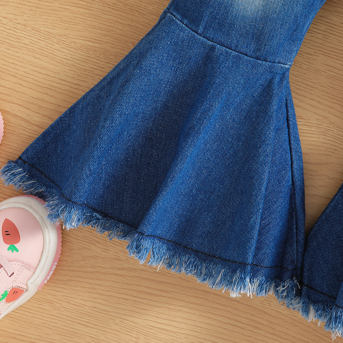 여아용 데님 팬츠, 봄 가을 신상, 유럽풍, 아동용 나팔바지, 유행하는 아동복 바지 도매스토어 가기