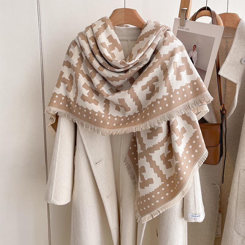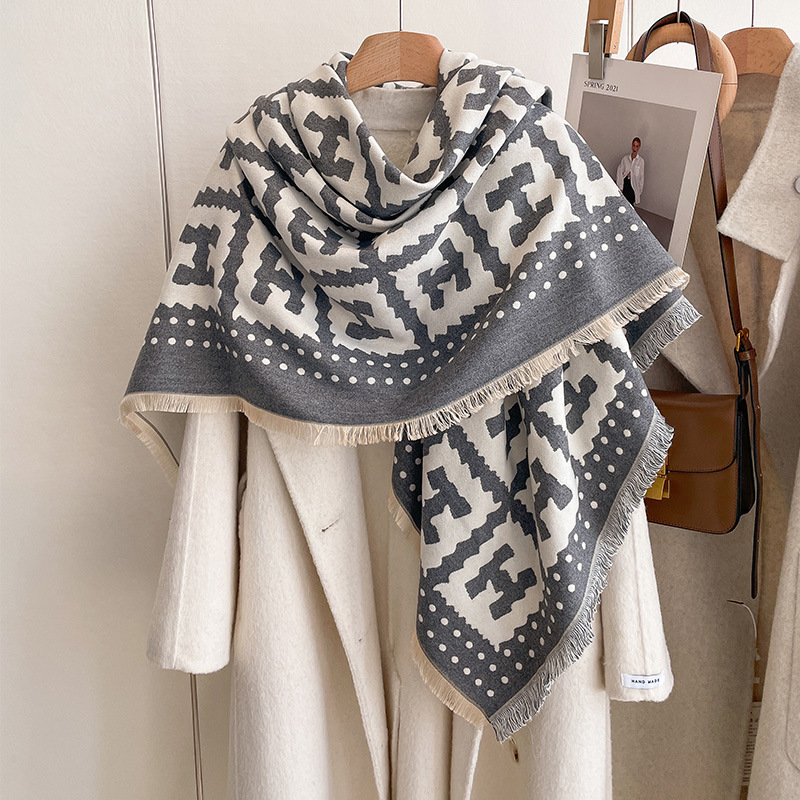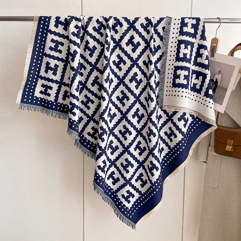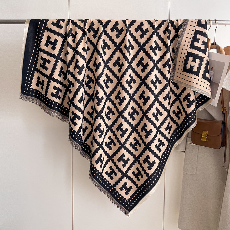 유럽과 미국 스타일의 클래식 컬러 패션 간단한 문자 H 숙녀 모방 캐시미어 따뜻한 스카프 가을과 겨울 큰 사각형 스카프 목도리