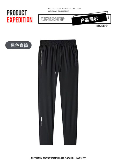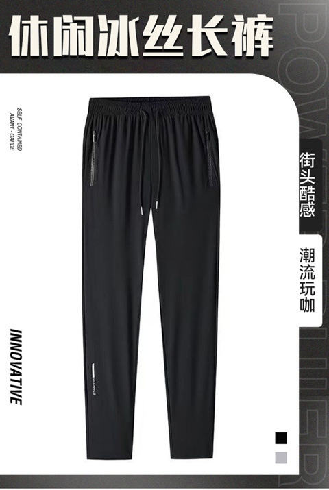남성용 아이스 실크 바지 여름 얇은 느슨한 캐주얼 스포츠 플러스 사이즈 바지 유행 패션 솔리드 컬러 아이스 실크 바지스토어 가기