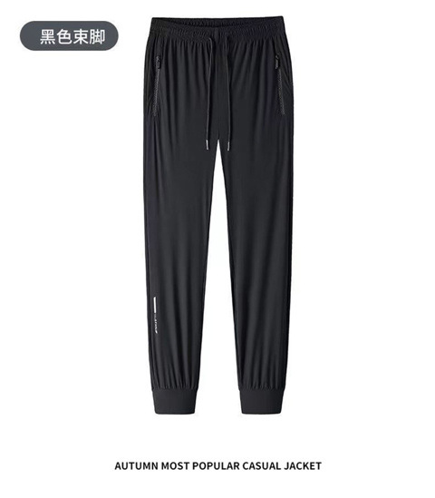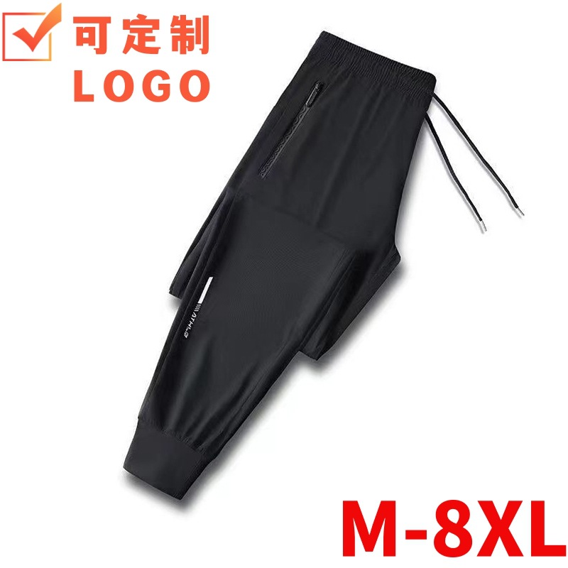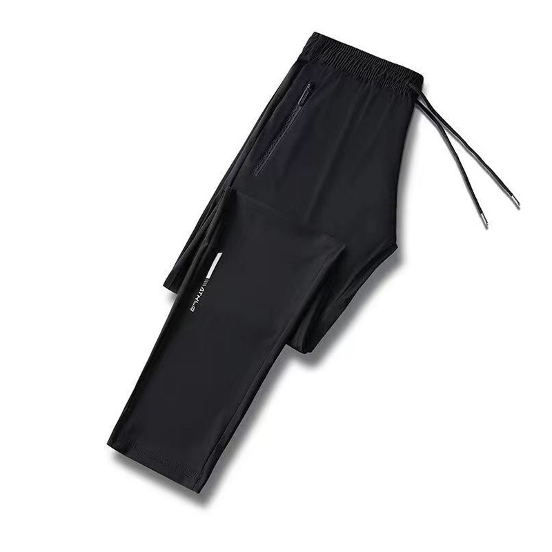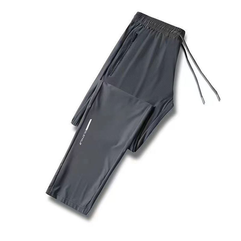 남성용 아이스 실크 바지 여름 얇은 느슨한 캐주얼 스포츠 플러스 사이즈 바지 유행 패션 솔리드 컬러 아이스 실크 바지