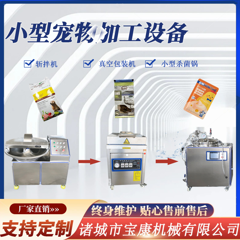 애완 동물 식품 장비 제조 업체 고기 젖은 음식 도마 기계 애완 동물 고양이 스트립 살균 냄비 애완 동물 식품 가공스토어 가기