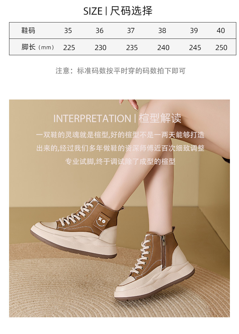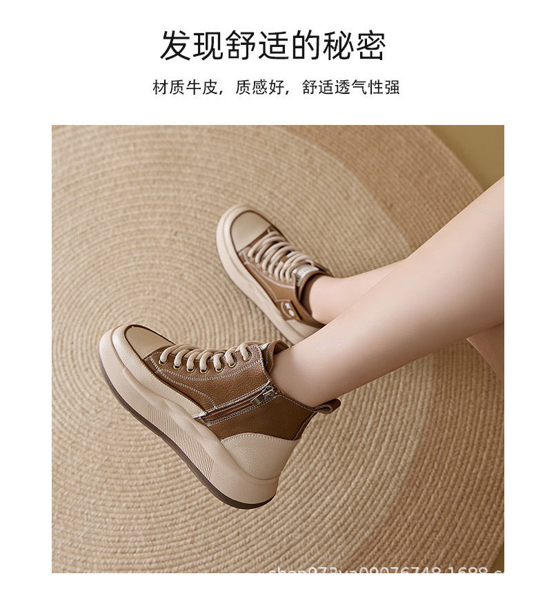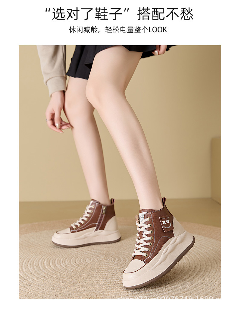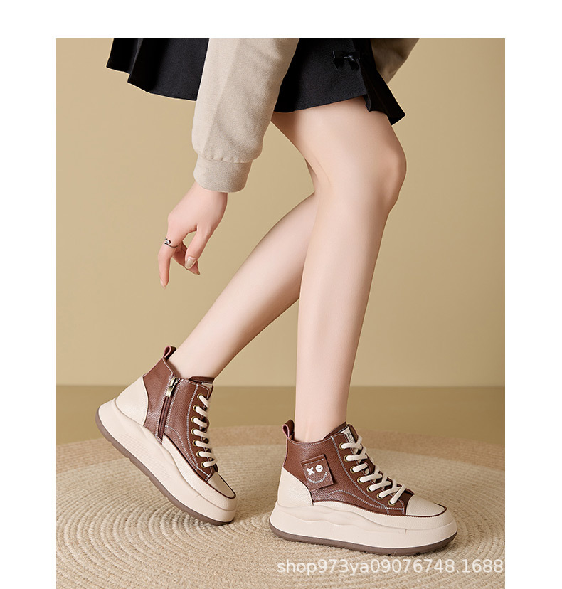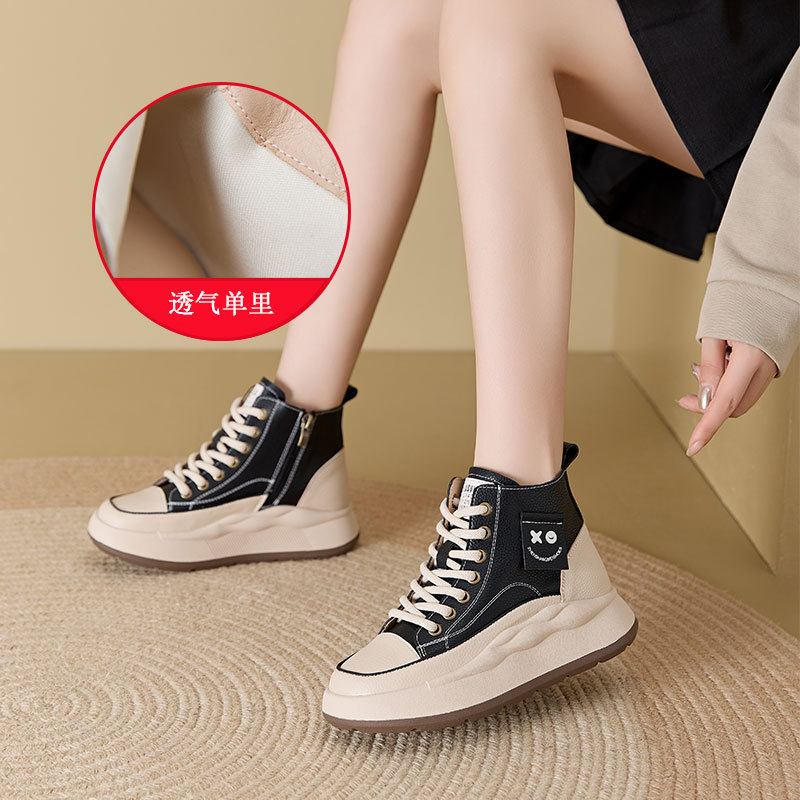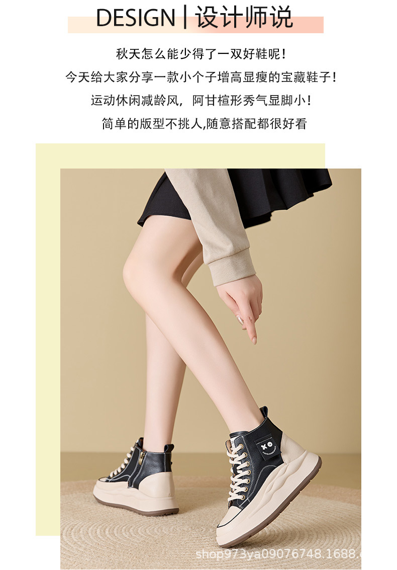 가을 새로운 정품 가죽 캐주얼 싱글 레이어 신발 여성의 2024 작은 두꺼운 바닥 증가 슬리밍 사이드 지퍼 하이 탑 신발 550