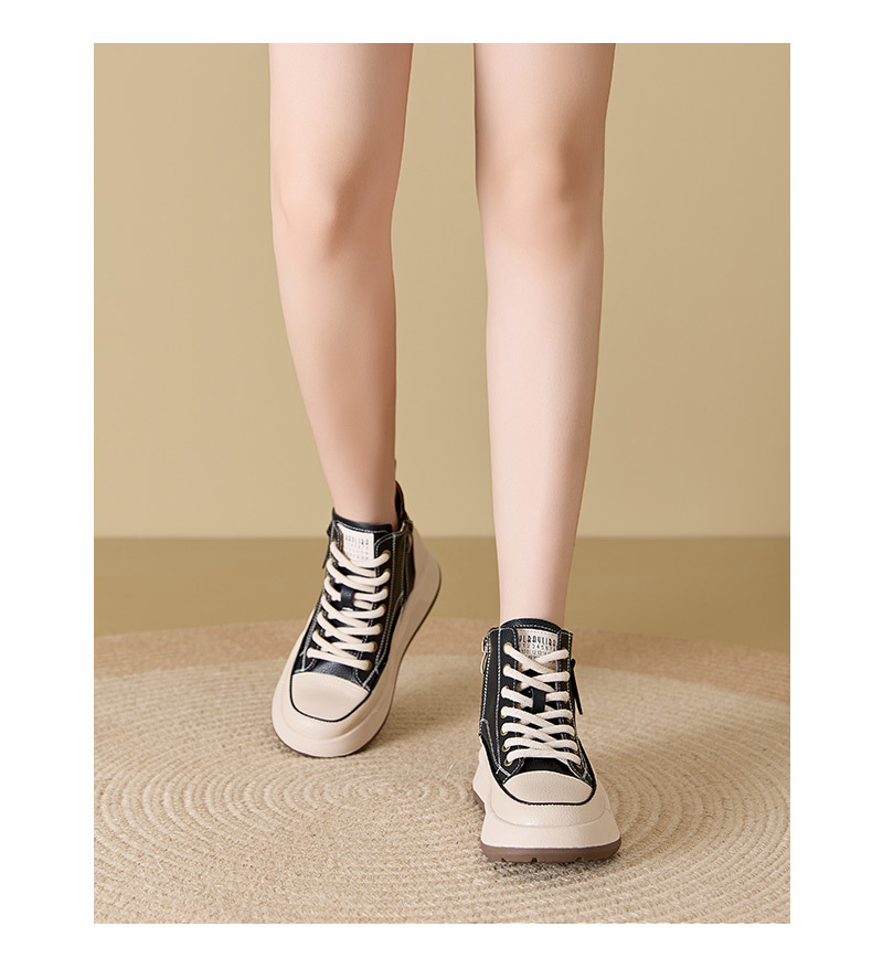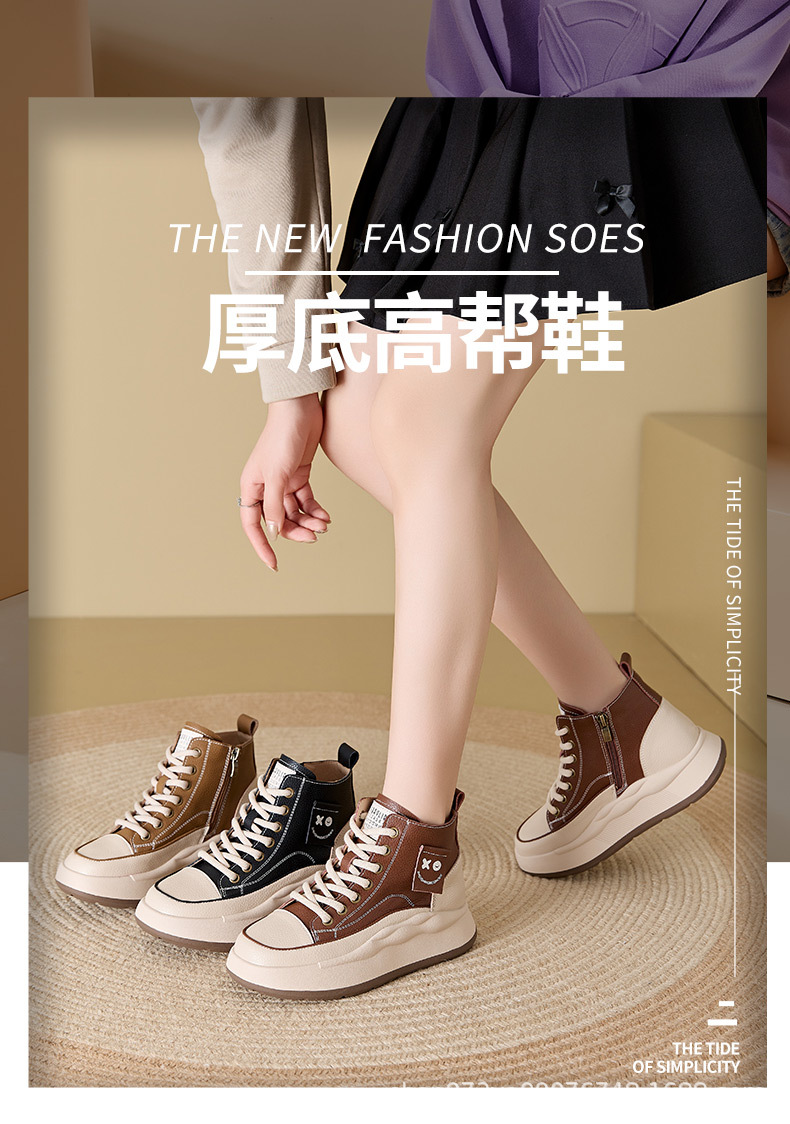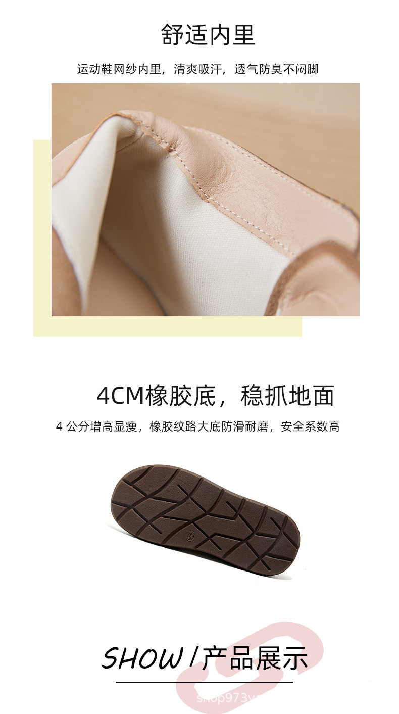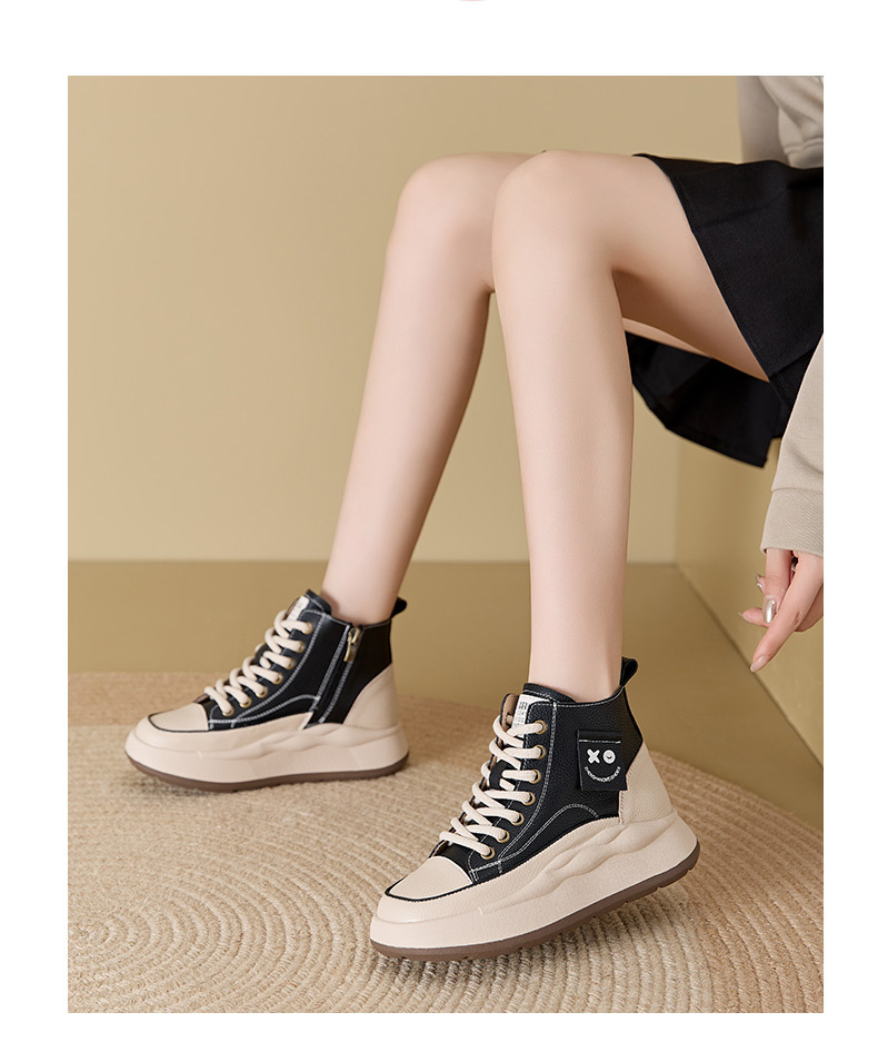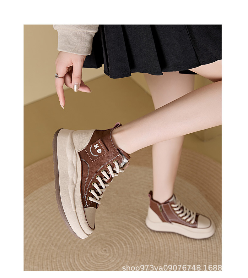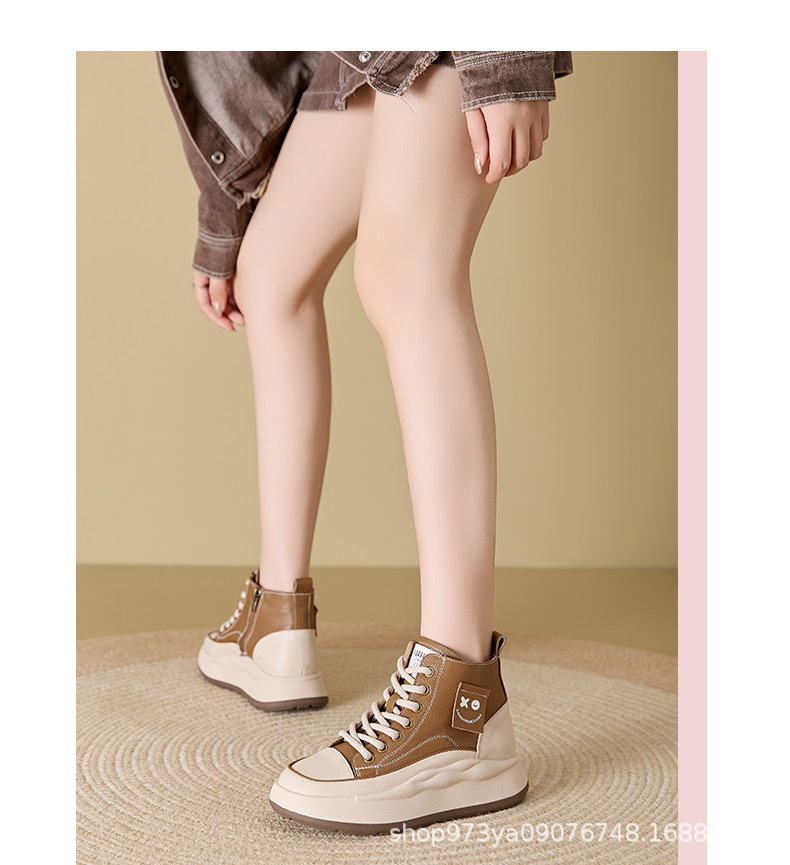 가을 새로운 정품 가죽 캐주얼 싱글 레이어 신발 여성의 2024 작은 두꺼운 바닥 증가 슬리밍 사이드 지퍼 하이 탑 신발 550