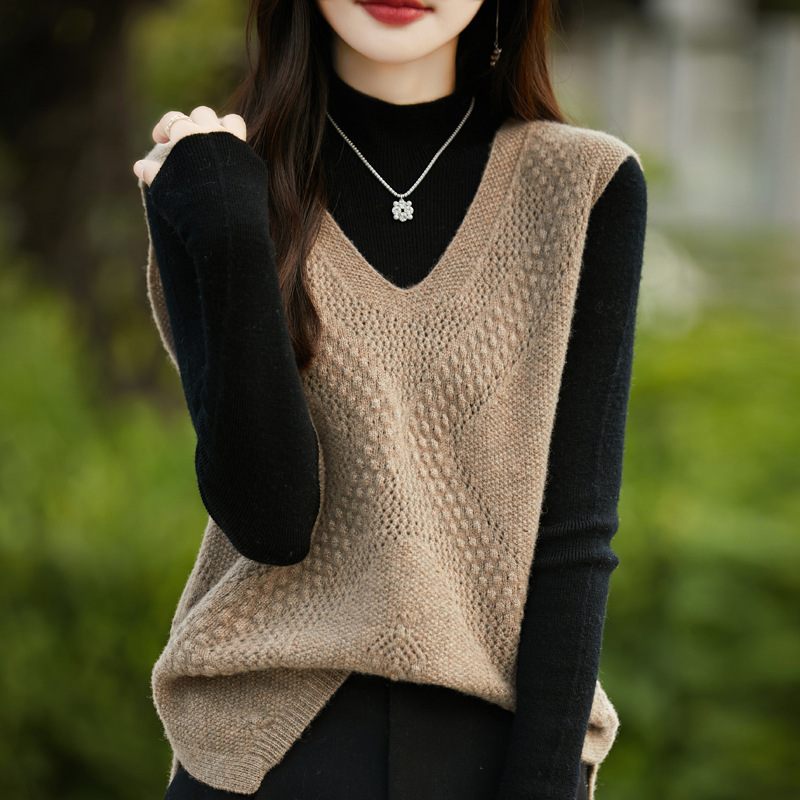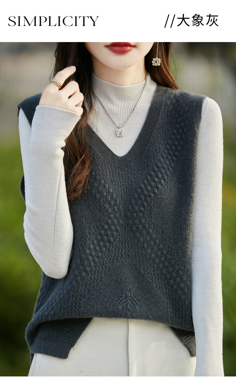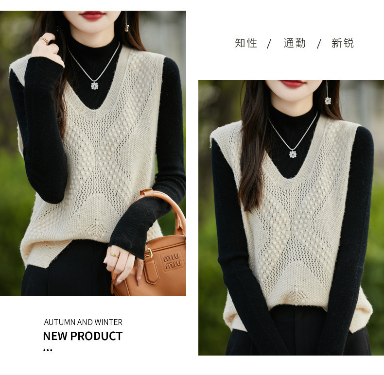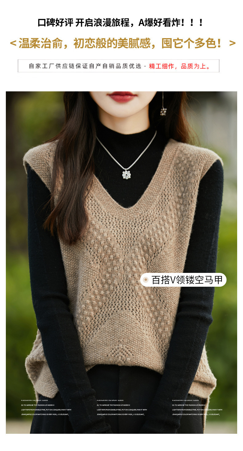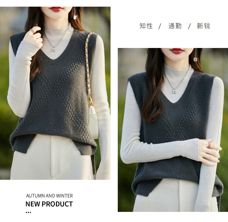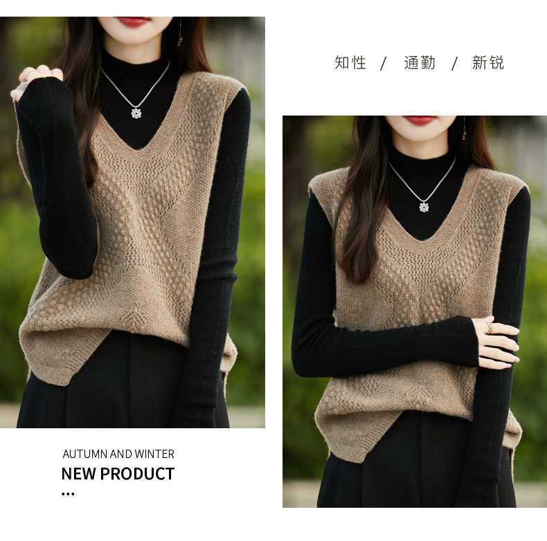 가을 2024 년 새로운 여성 니트 조끼 풀오버 조끼 웨이스트 코트 V-넥 자카드 느슨한 앤디 벨벳 공장 도매