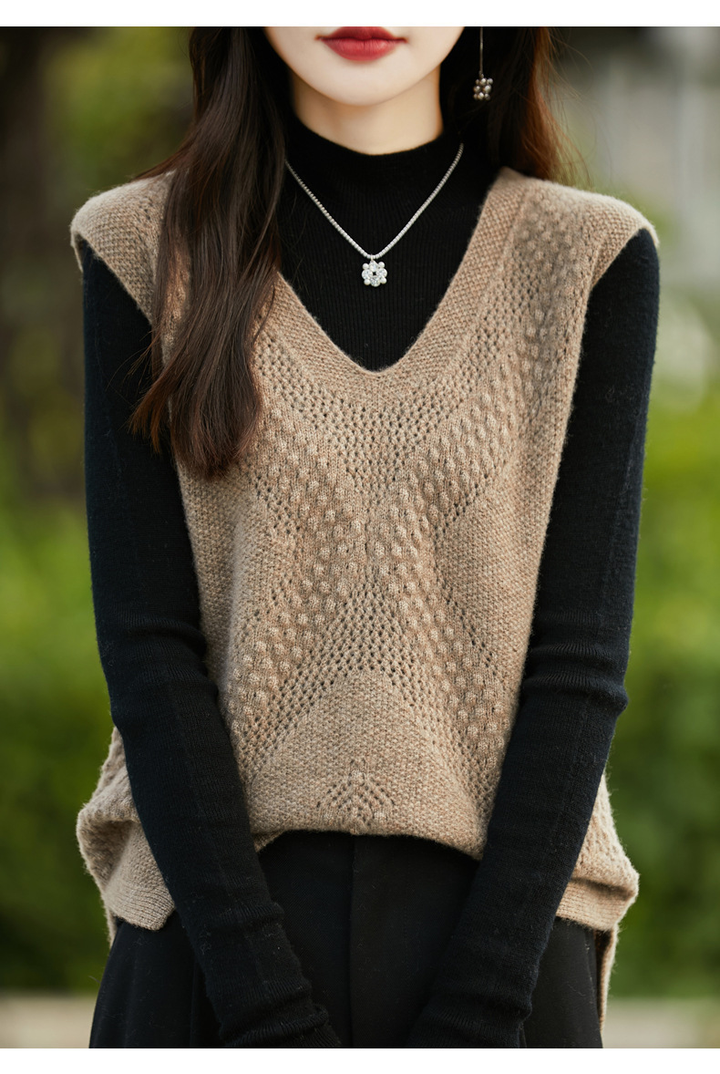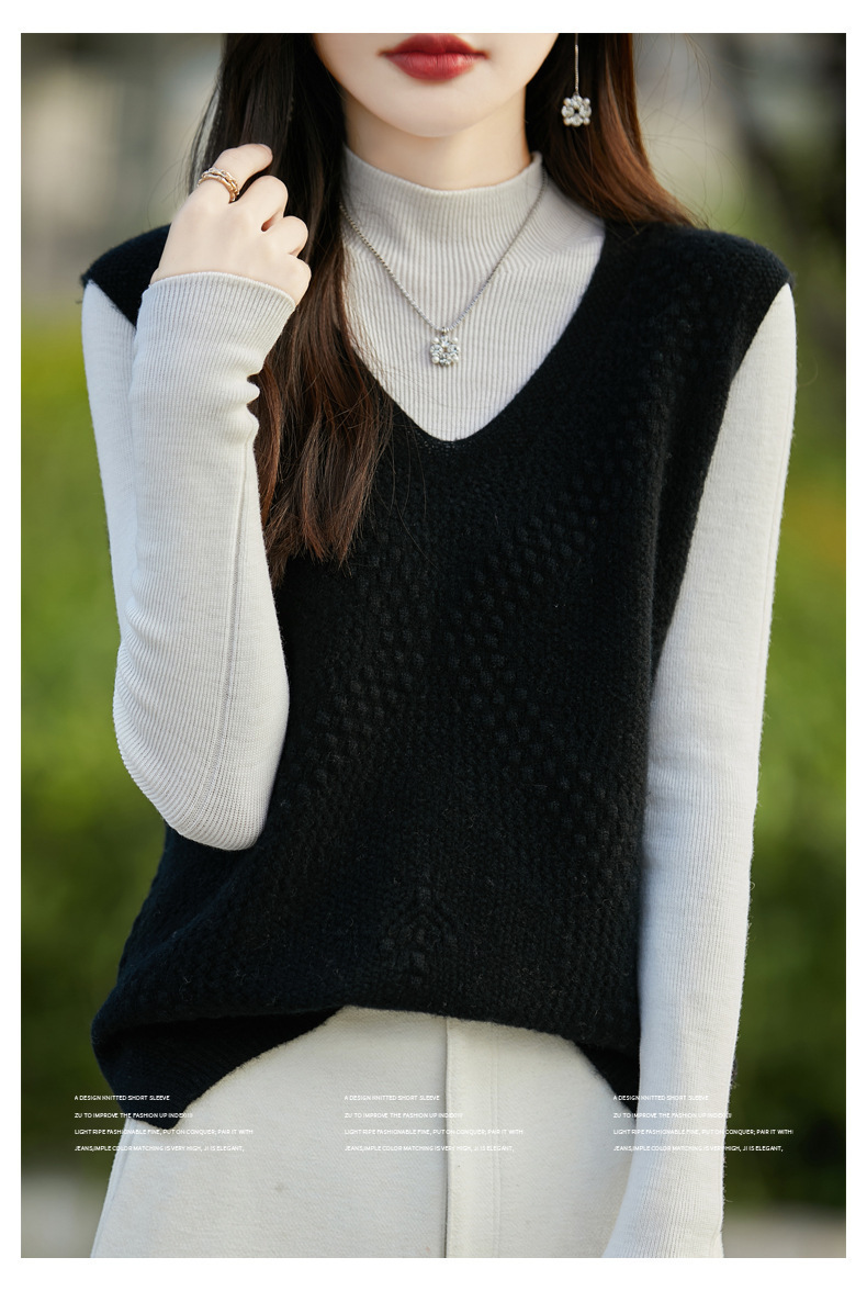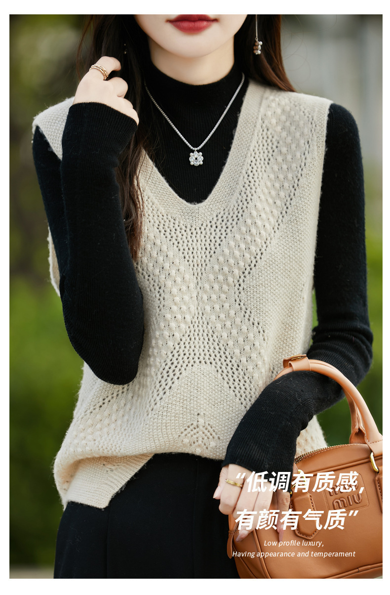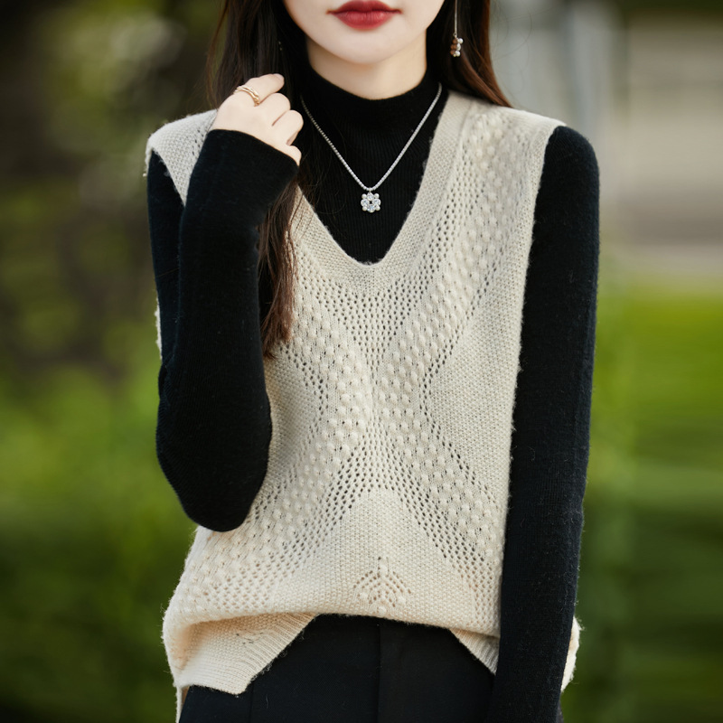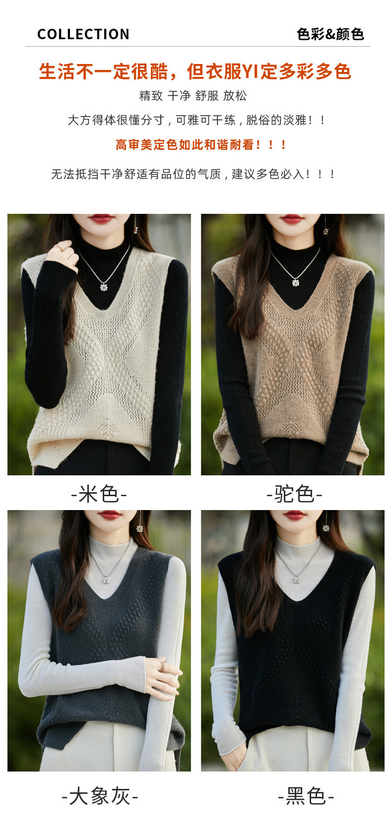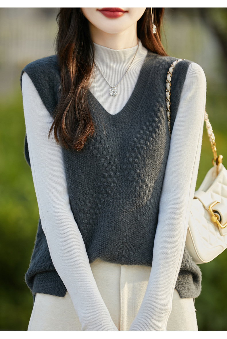 가을 2024 년 새로운 여성 니트 조끼 풀오버 조끼 웨이스트 코트 V-넥 자카드 느슨한 앤디 벨벳 공장 도매