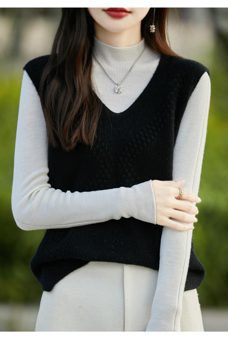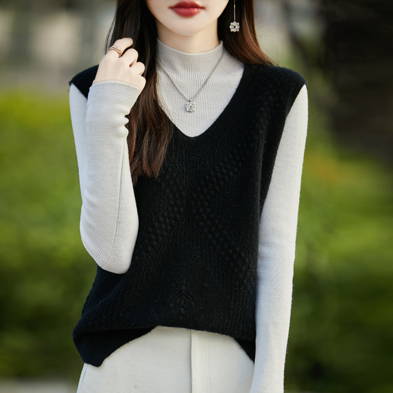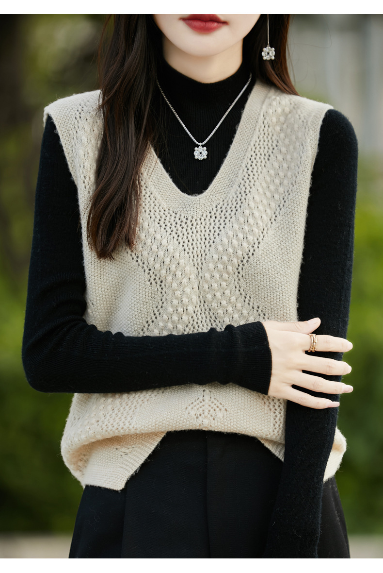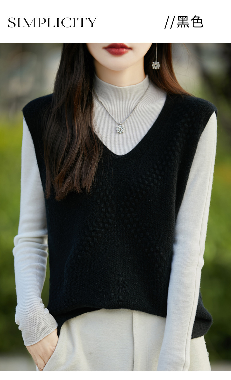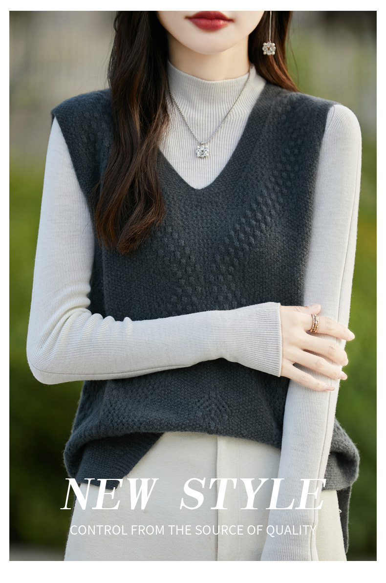 가을 2024 년 새로운 여성 니트 조끼 풀오버 조끼 웨이스트 코트 V-넥 자카드 느슨한 앤디 벨벳 공장 도매