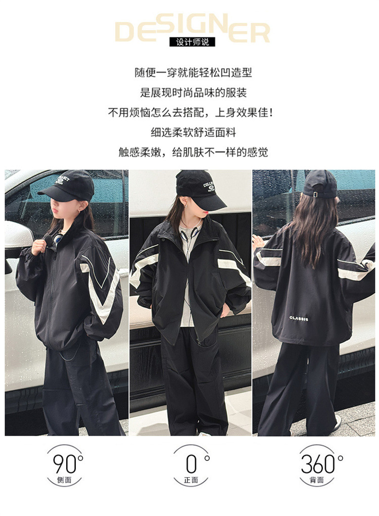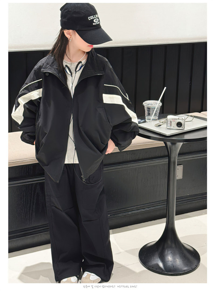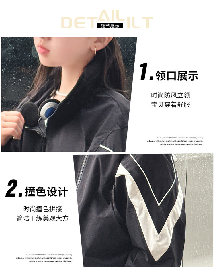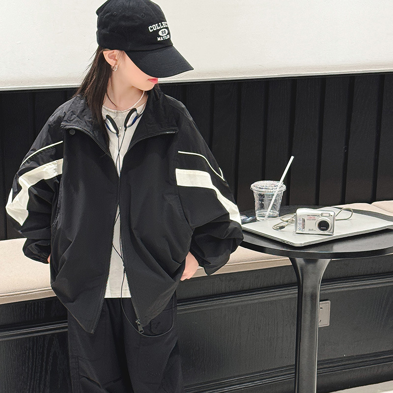 소녀 재킷 코트 가을 2024 새로운 스타일 복고풍 대조 컬러 느슨한 버전 스포츠 캐주얼 탑 가을