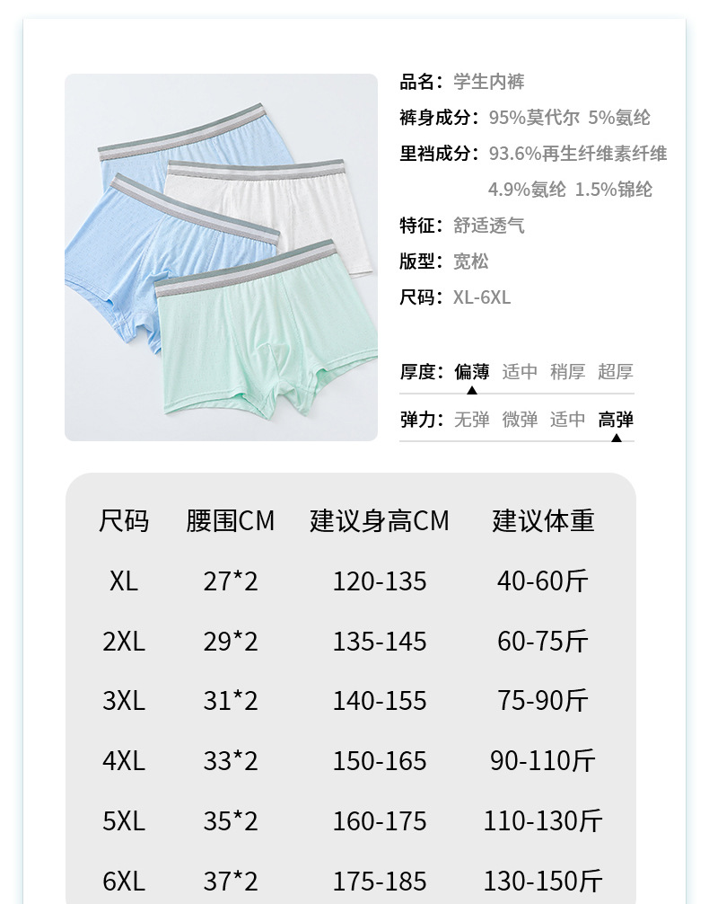 남학생 속옷 모달 10 대 발달 복서 여름 어린이 중학생 복서 반바지스토어 가기