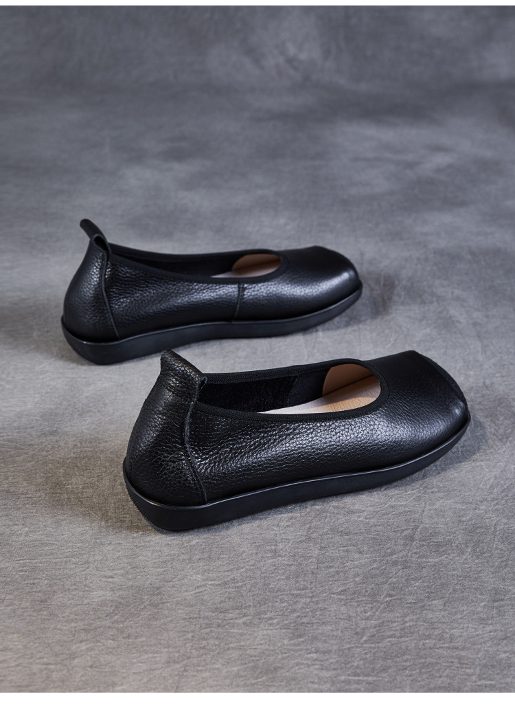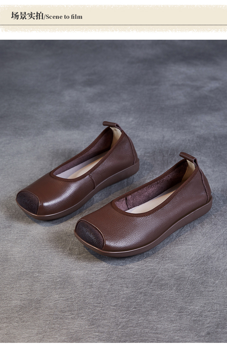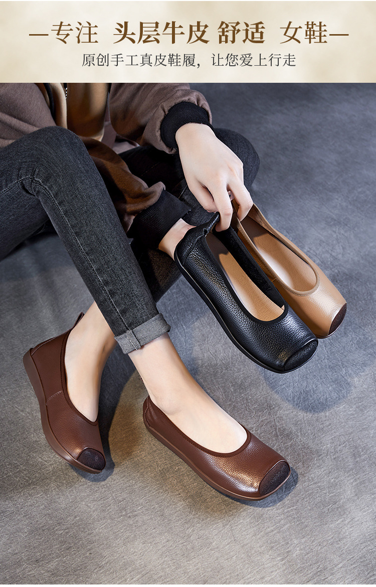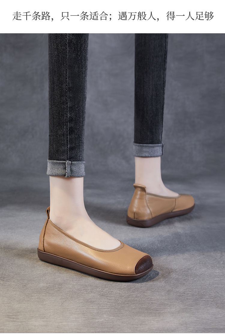 첫 번째 레이어 Cowhide 빈티지 싱글 레이어 신발 여성의 2024 새로운 플랫 올 매치 편안한 스퀘어 발가락 캐주얼 중년 여성 신발스토어 가기