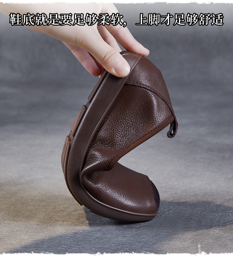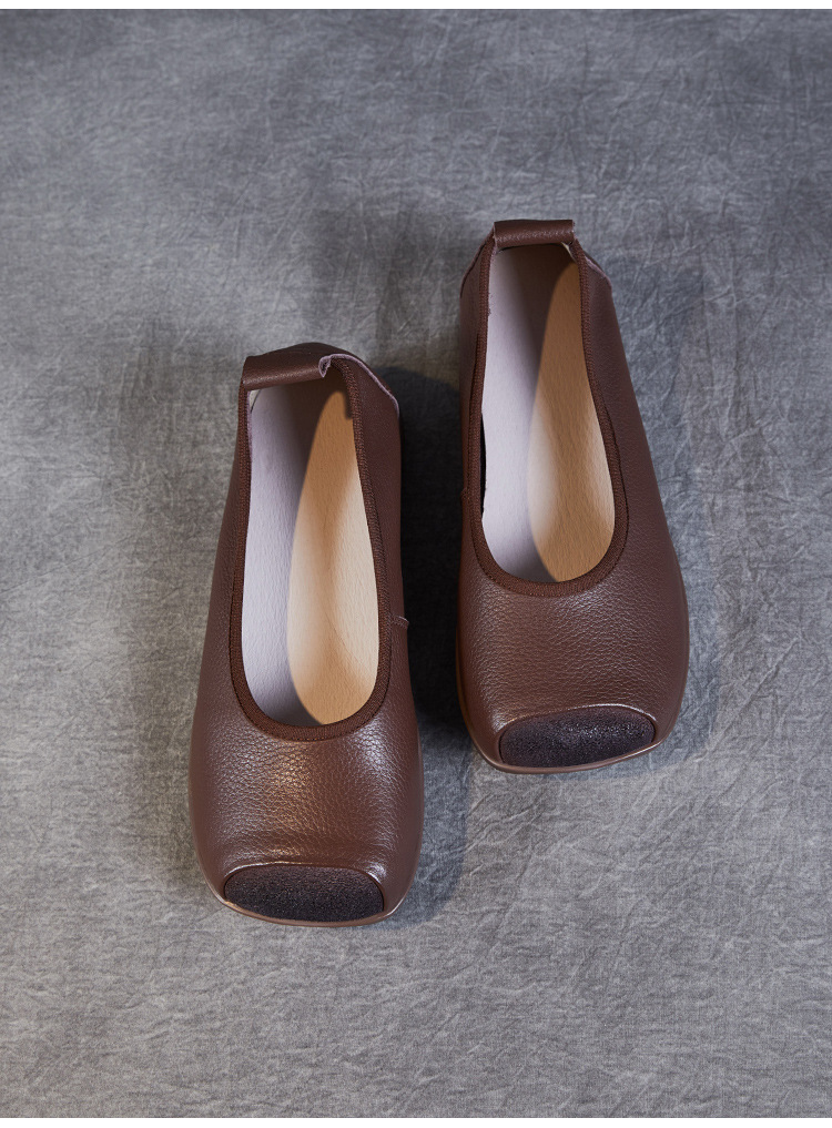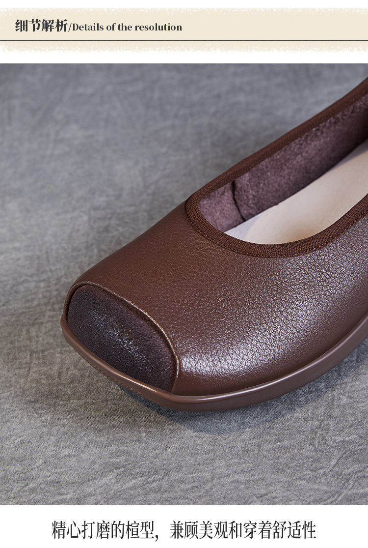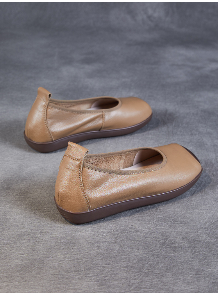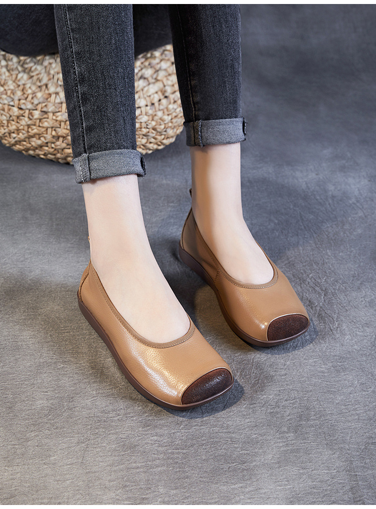첫 번째 레이어 Cowhide 빈티지 싱글 레이어 신발 여성의 2024 새로운 플랫 올 매치 편안한 스퀘어 발가락 캐주얼 중년 여성 신발스토어 가기