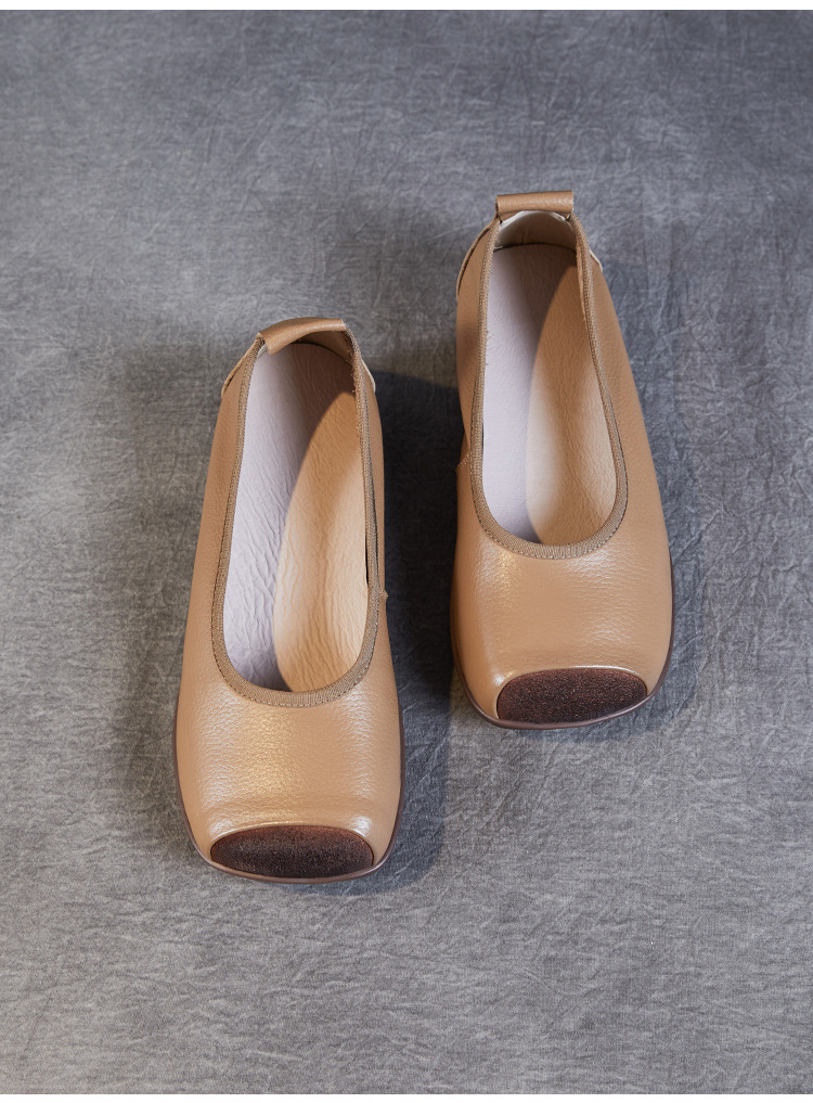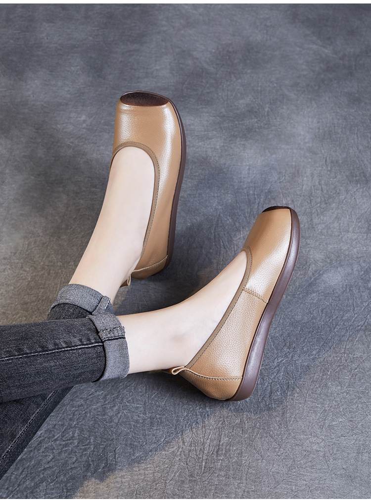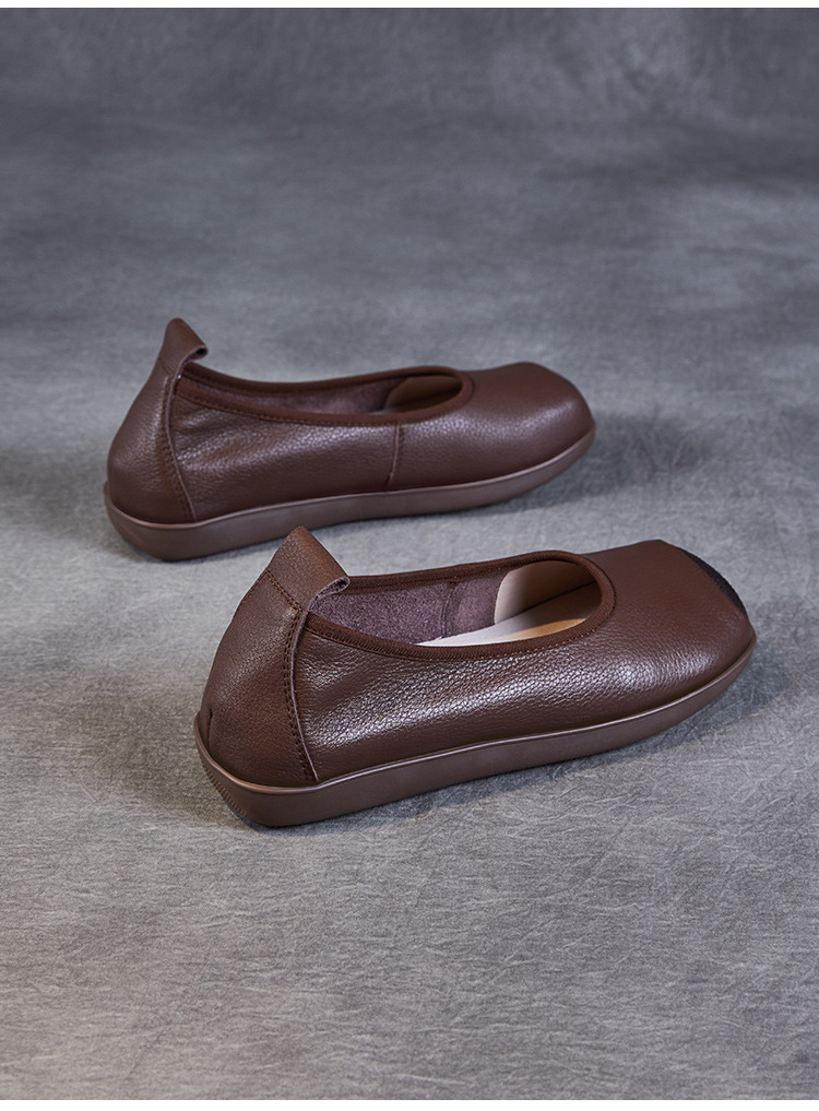 첫 번째 레이어 Cowhide 빈티지 싱글 레이어 신발 여성의 2024 새로운 플랫 올 매치 편안한 스퀘어 발가락 캐주얼 중년 여성 신발