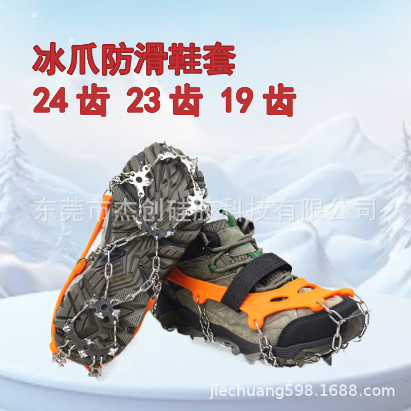 재고 스테인레스 스틸 스키 실리콘 아이스 클로 19, 23, 24 치아 산 등반 미끄럼 방지 신발 커버 눈 미끄럼 방지 아이스 캐치
