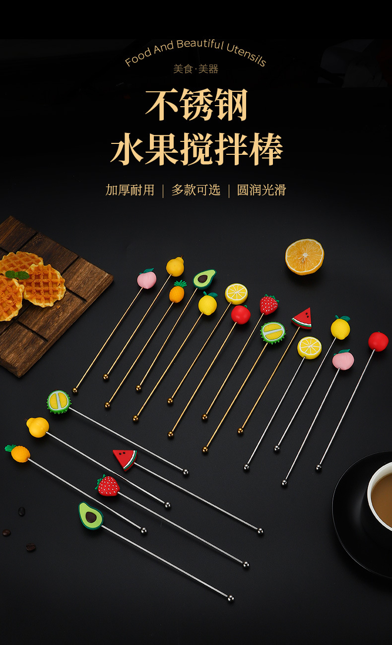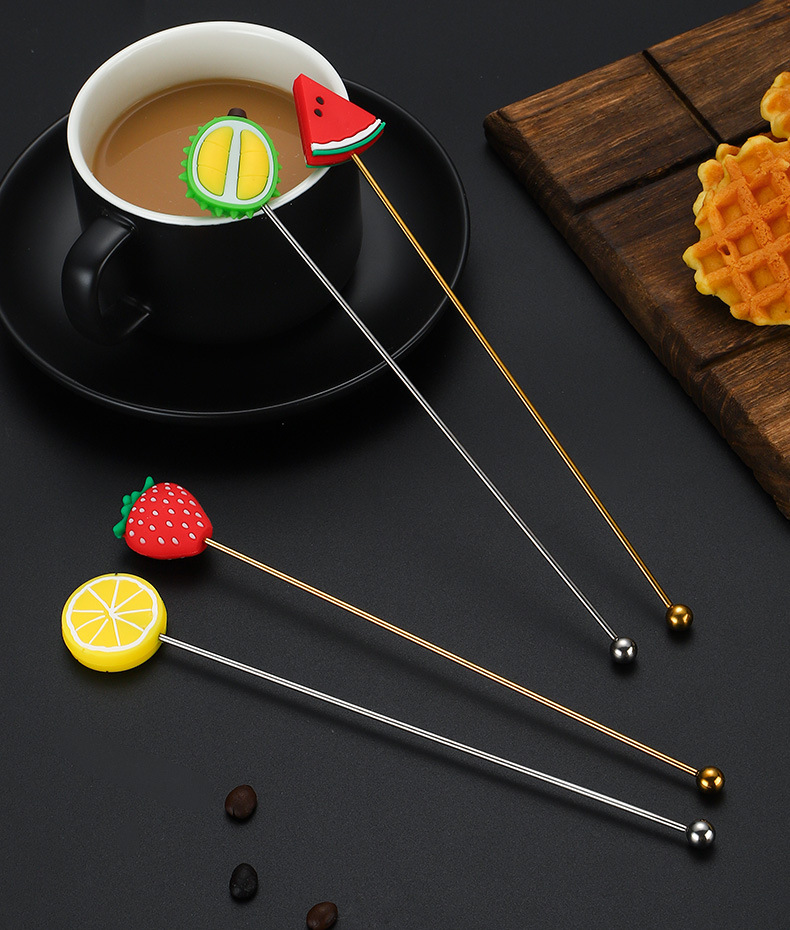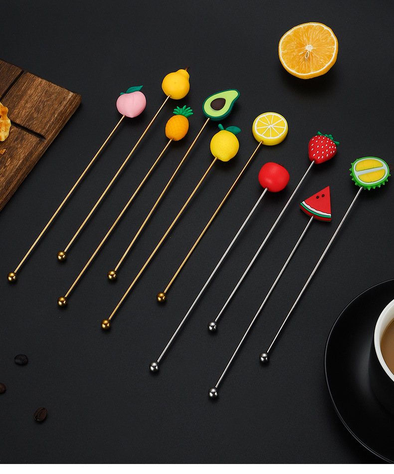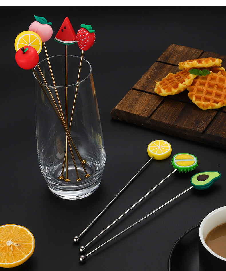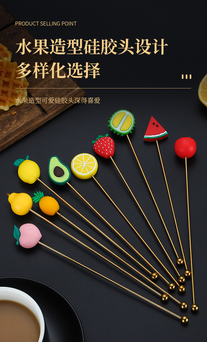 국경 304 스테인레스 스틸 실리콘 과일 혼합 스틱 창조적 인 긴 핸들 바 칵테일 혼합 숟가락 혼합 스틱