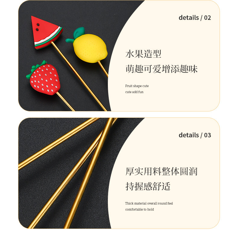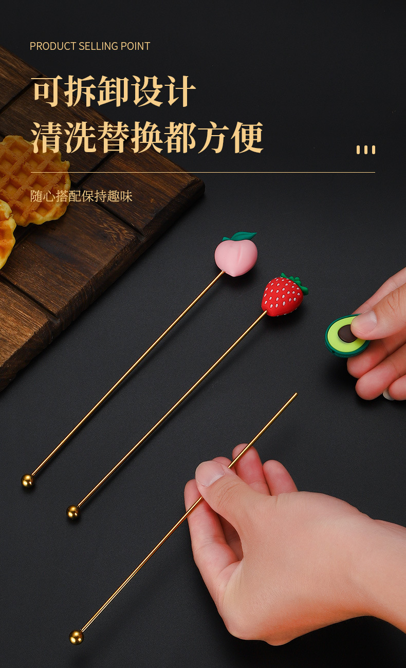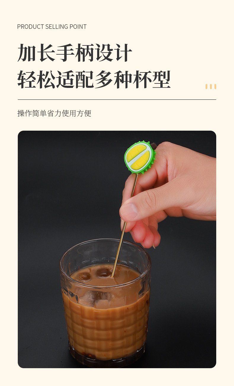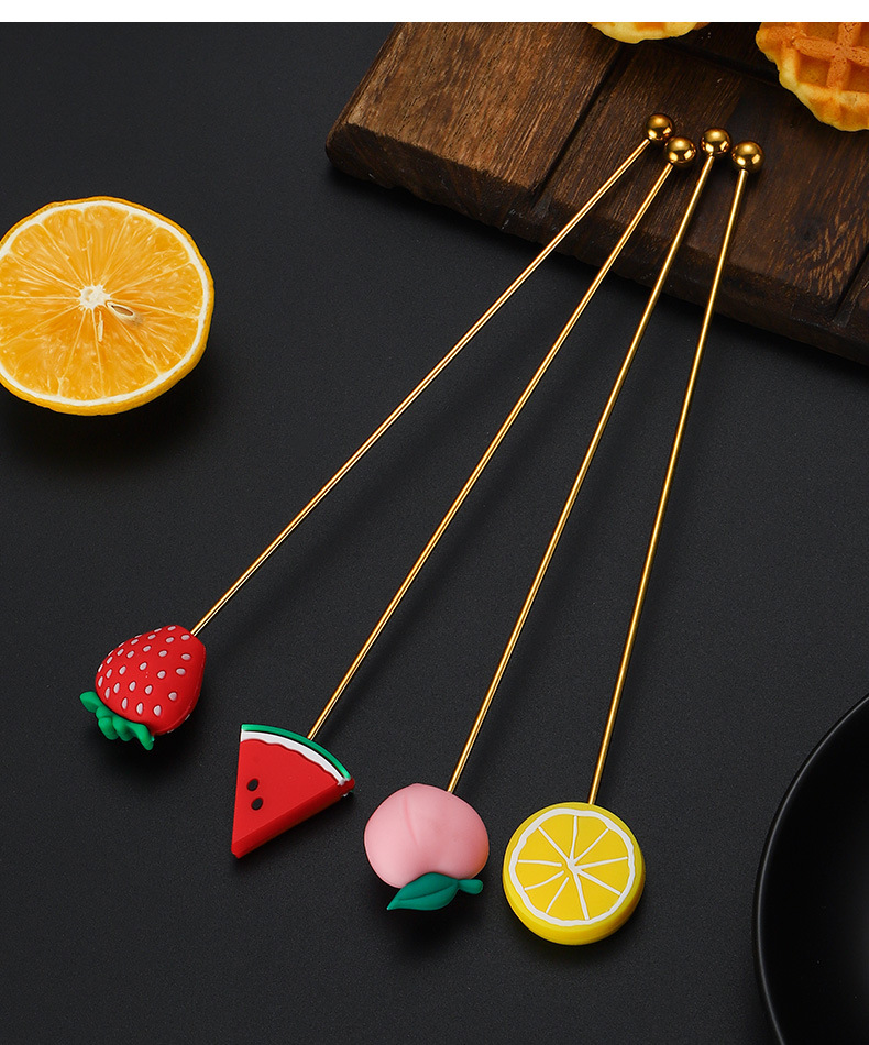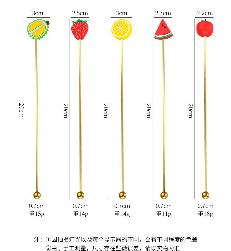 국경 304 스테인레스 스틸 실리콘 과일 혼합 스틱 창조적 인 긴 핸들 바 칵테일 혼합 숟가락 혼합 스틱