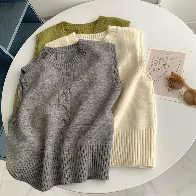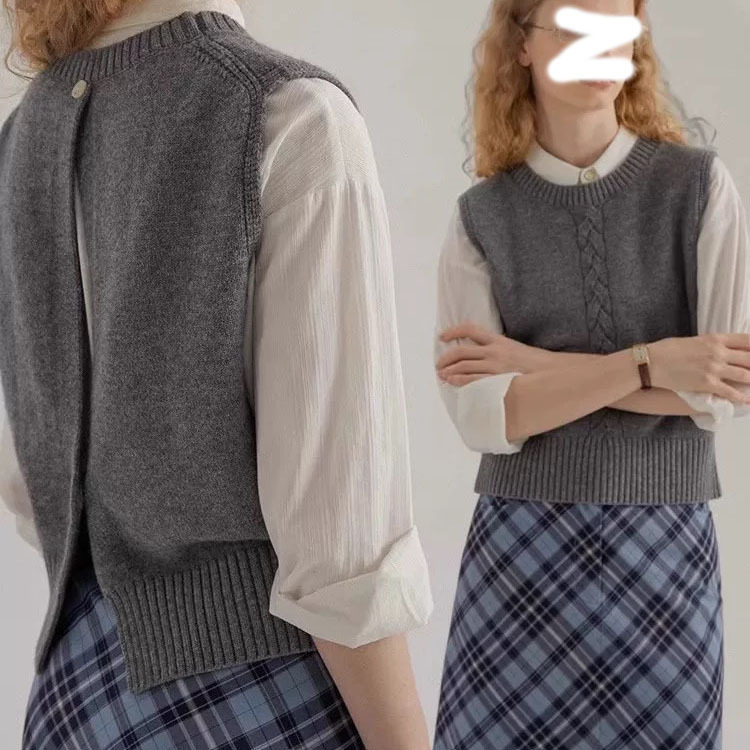 그레이 크루 넥 니트 스웨터 조끼 여성 등 쪼개지는 가을과 겨울 오버레이 민소매 짧은 조끼 조끼스토어 가기