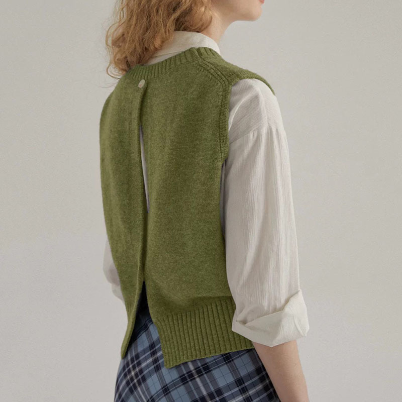 그레이 크루 넥 니트 스웨터 조끼 여성 등 쪼개지는 가을과 겨울 오버레이 민소매 짧은 조끼 조끼