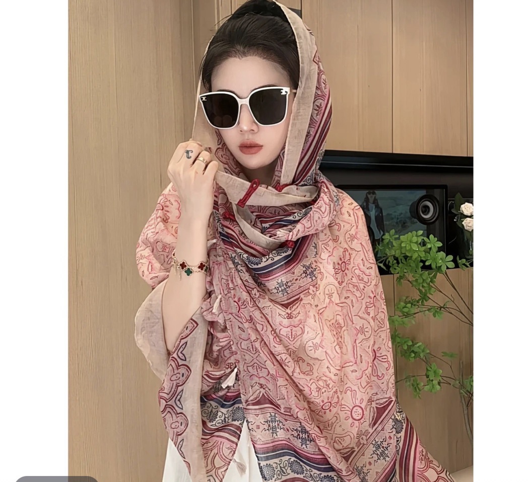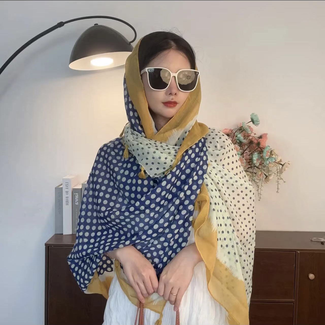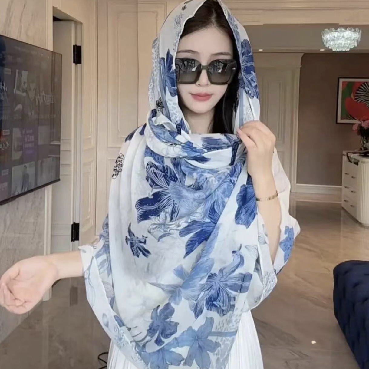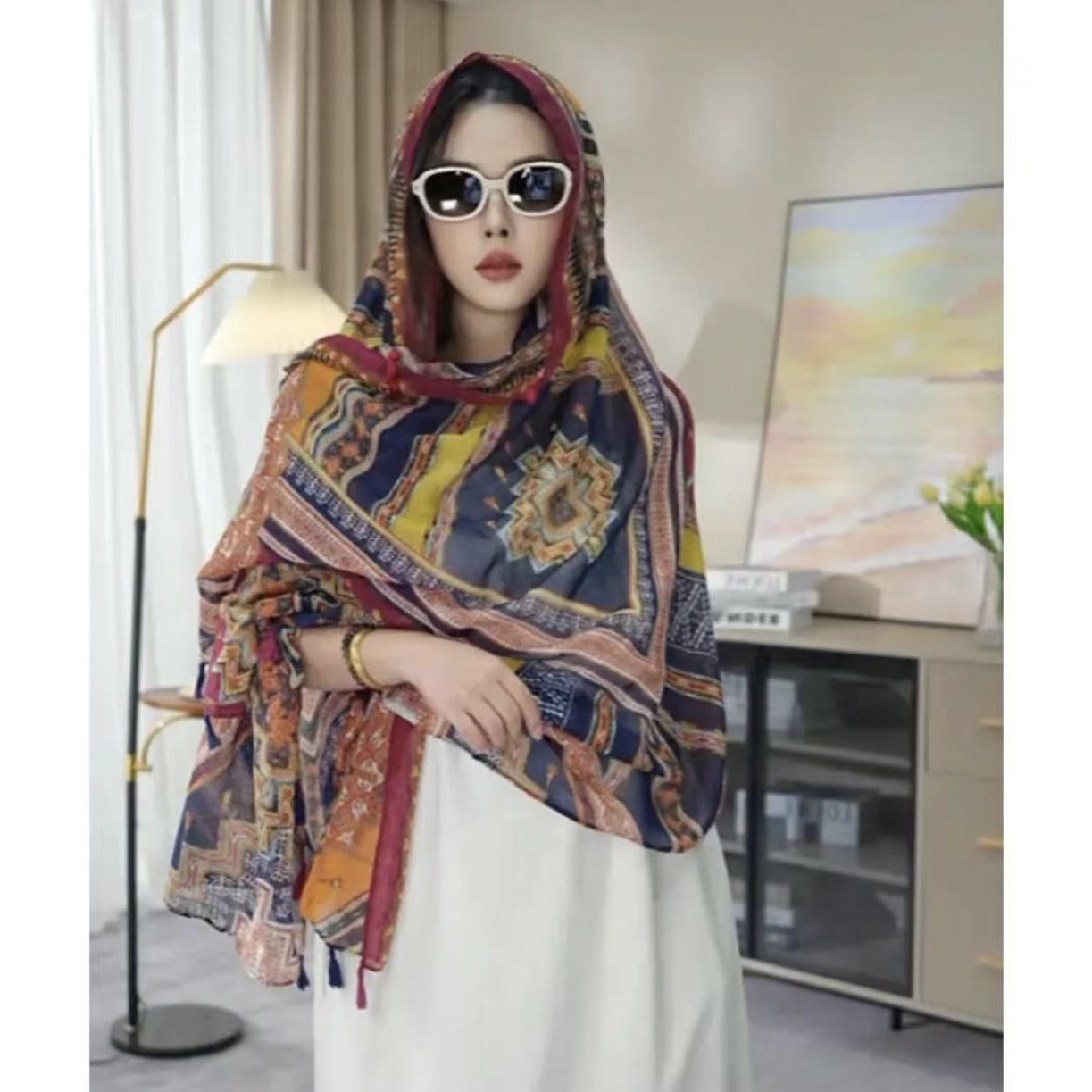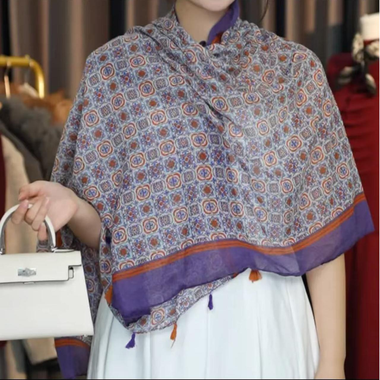 빈티지 민족 스타일 선 스크린 버클 목도리 윈난 칭하이 관광 실크 스카프를 착용 한 여름 하이 엔드 여성 중간 길이 외부