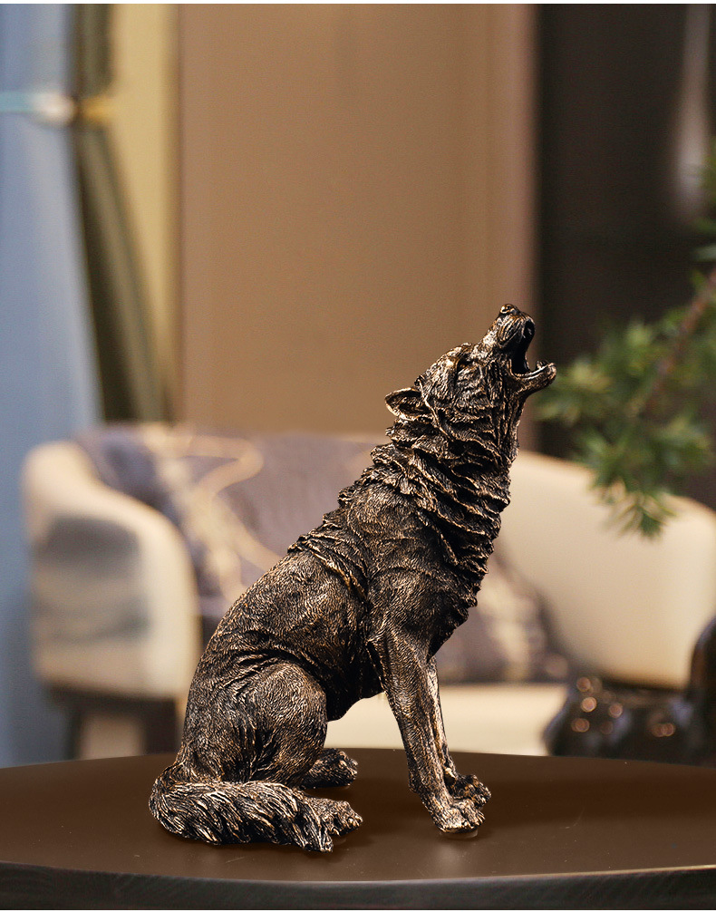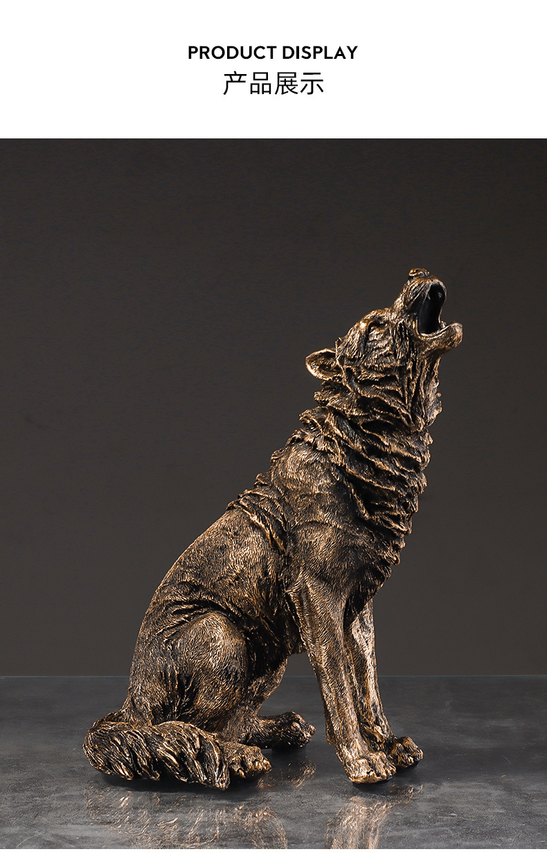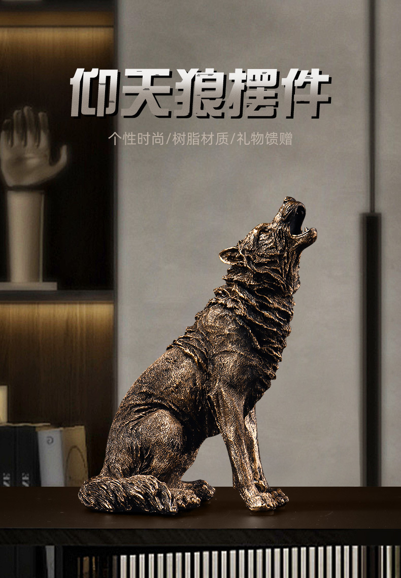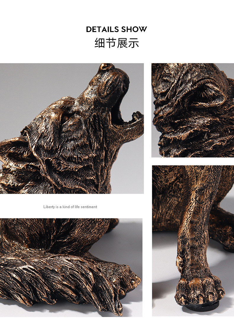 유럽식 홈 가구 수지 시뮬레이션 포효하는 늑대 모델 장식품 공예 거실 창 동물 장식품 창조적 인 선물