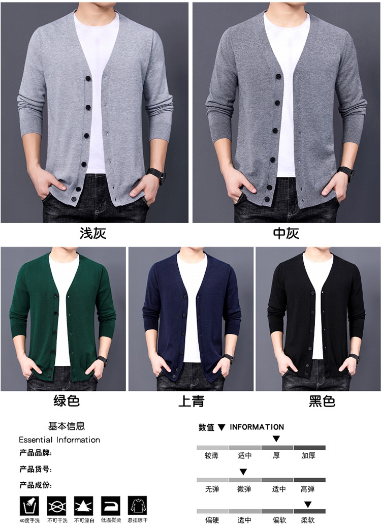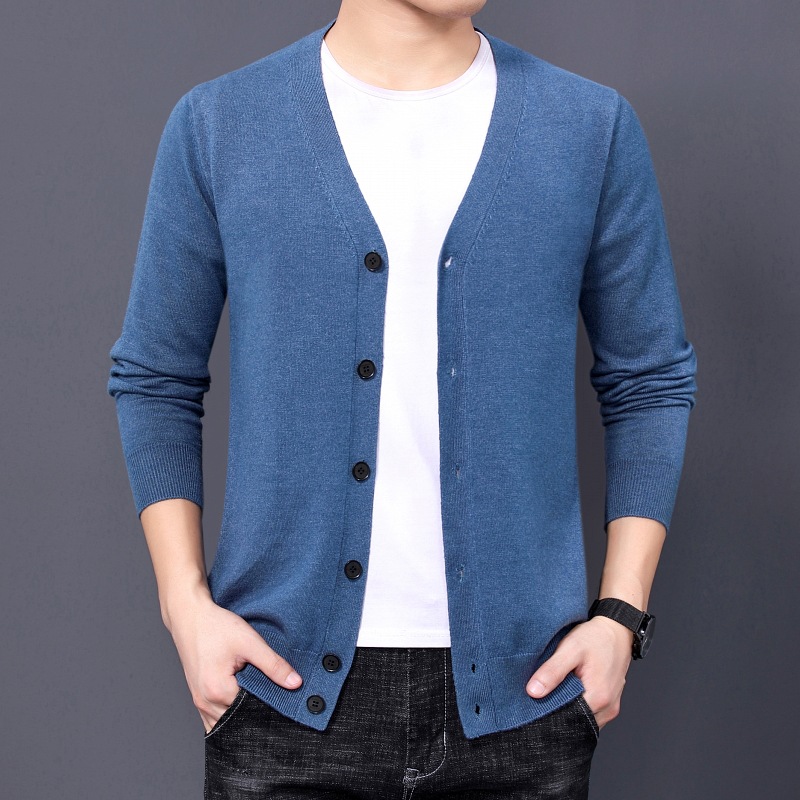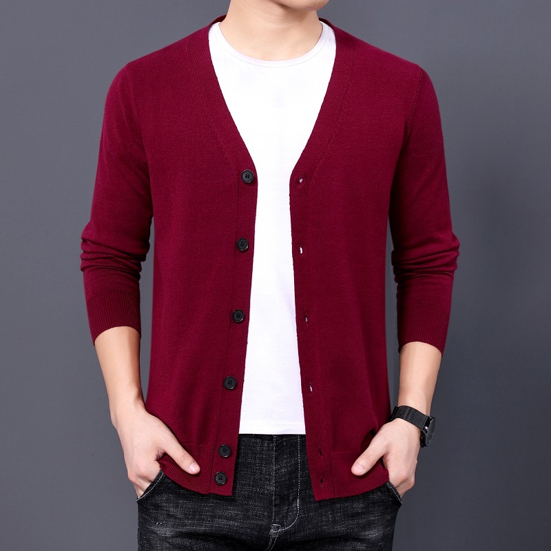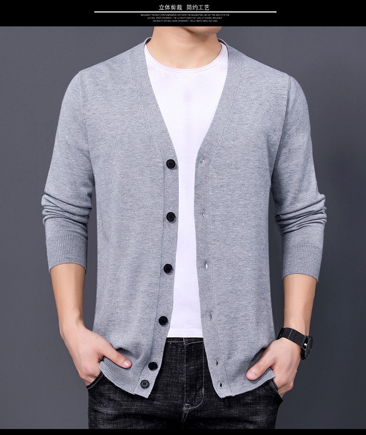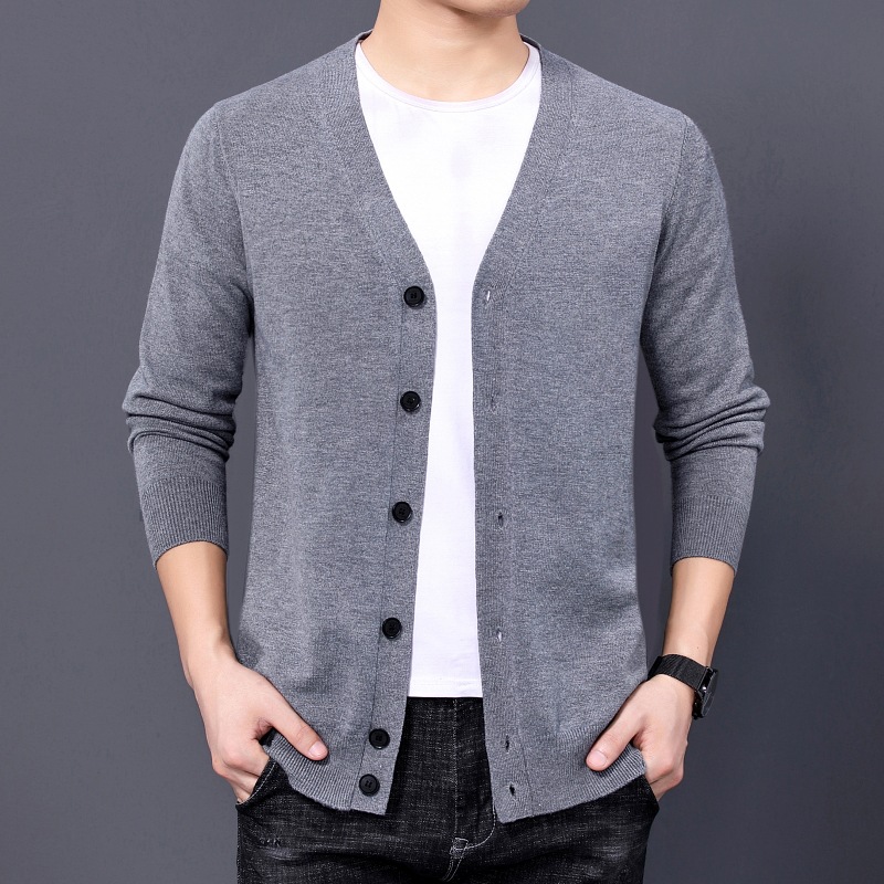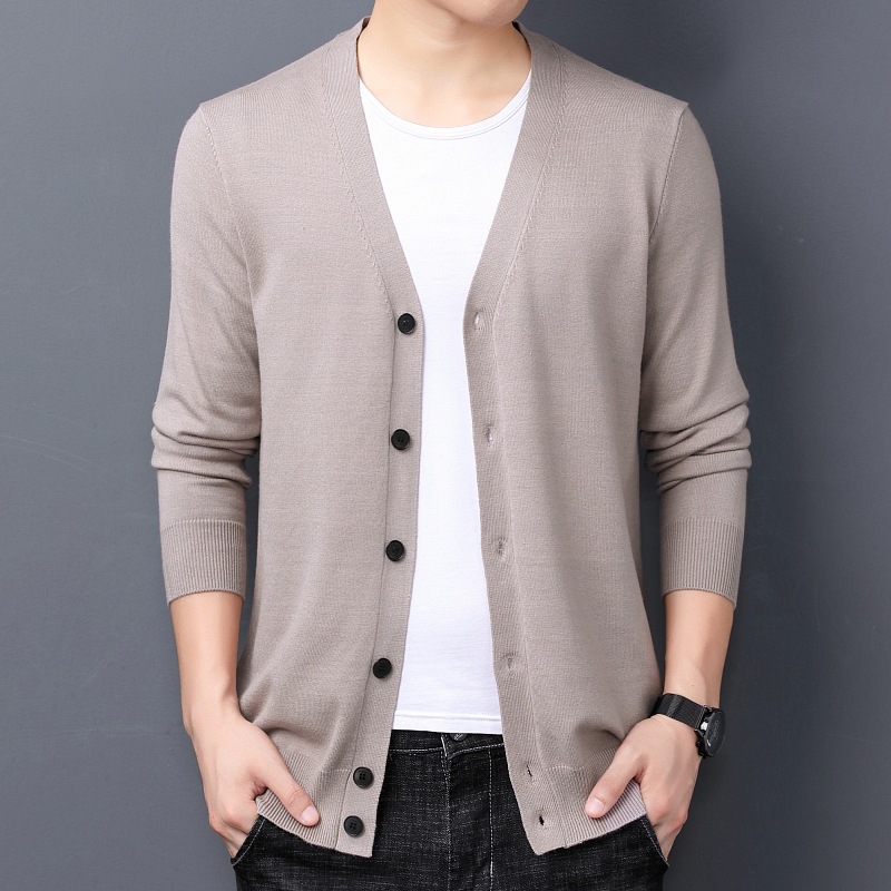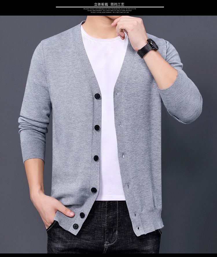 국경을 넘는 대외 무역 2024 봄과 가을 젊은 남성을위한 새로운 니트 카디건 남성용 얇은 긴팔 솔리드 컬러 니트 스웨터