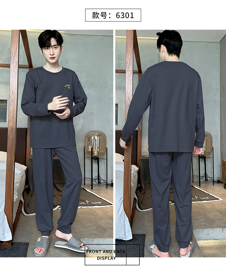 남자 잠옷 2024 년 봄과 가을 새로운 남자 긴 소매 바지 세트 소년 플러스 사이즈 네이비 홈 의류 여름스토어 가기
