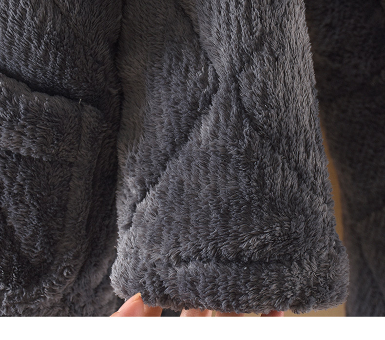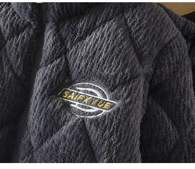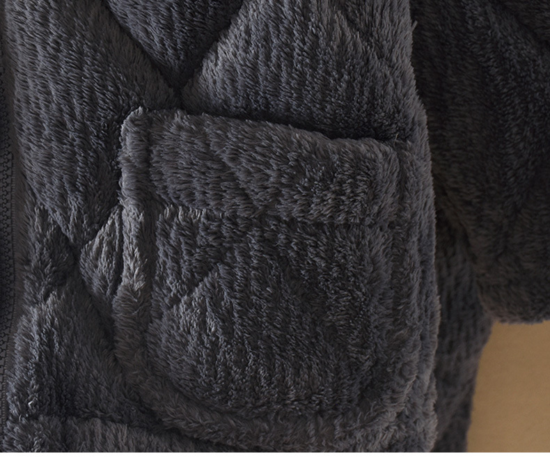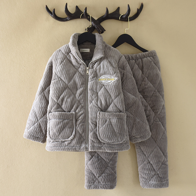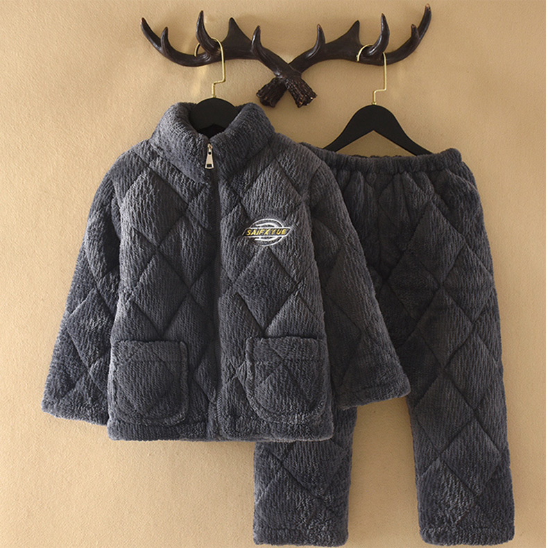 지퍼 칼라 소년의 잠옷 겨울 3 층 두꺼운 산호 양털 퀼트 소년의 중대형 어린이 가정 옷 세트 그레이