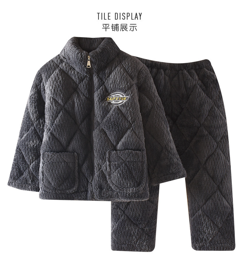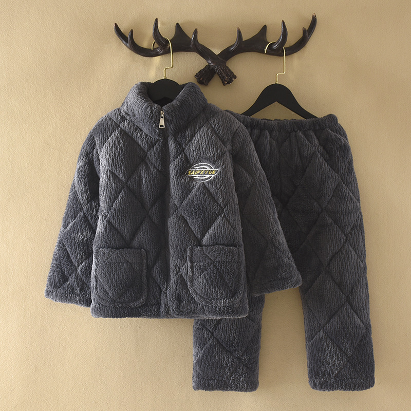 지퍼 칼라 소년의 잠옷 겨울 3 층 두꺼운 산호 양털 퀼트 소년의 중대형 어린이 가정 옷 세트 그레이스토어 가기