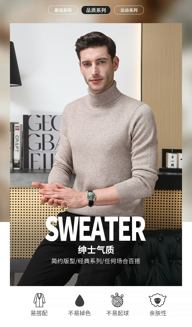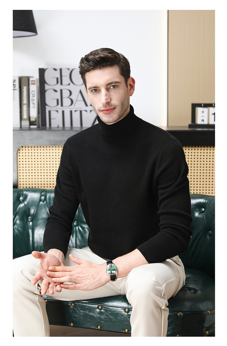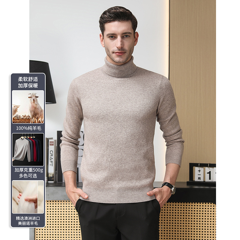 가을과 겨울 새로운 100 메리노 울 스웨터 남자 2 개의 옷깃 단색 긴 소매 터틀넥 스웨터 남성용 두꺼운 스웨터스토어 가기