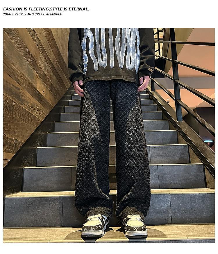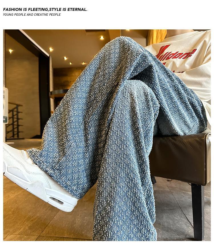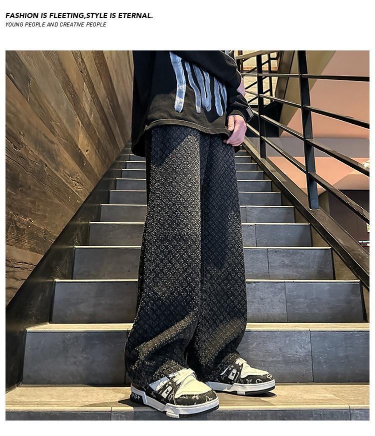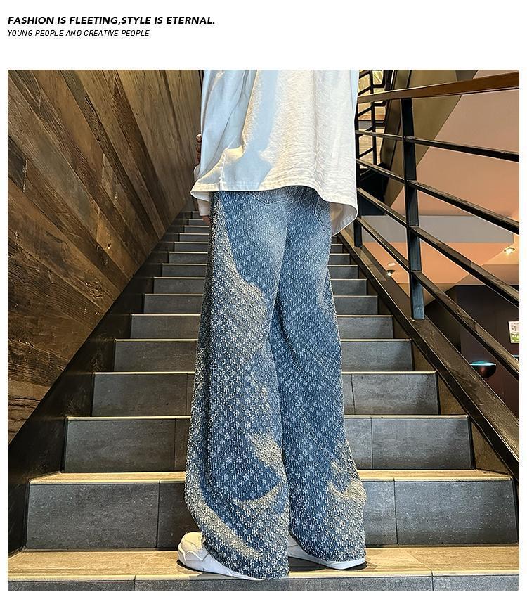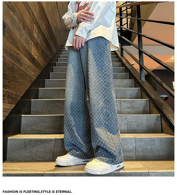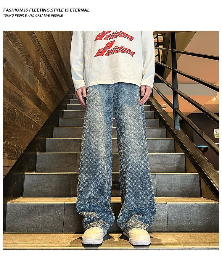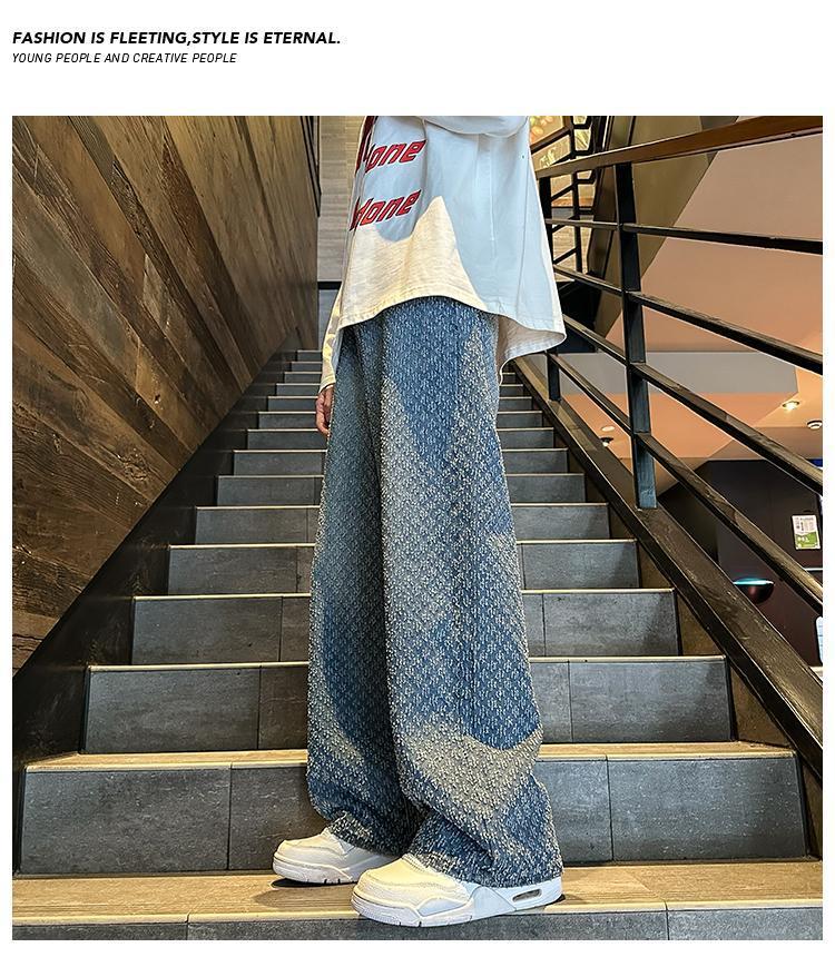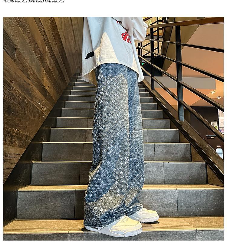 Xiao Xiang 스타일 Jacquard Jeans 남성 봄 미국 스타일 강아지 잘 생긴 디자인 센스 디프 레트로 느슨한 넓은 다리 스트레이트 바지스토어 가기