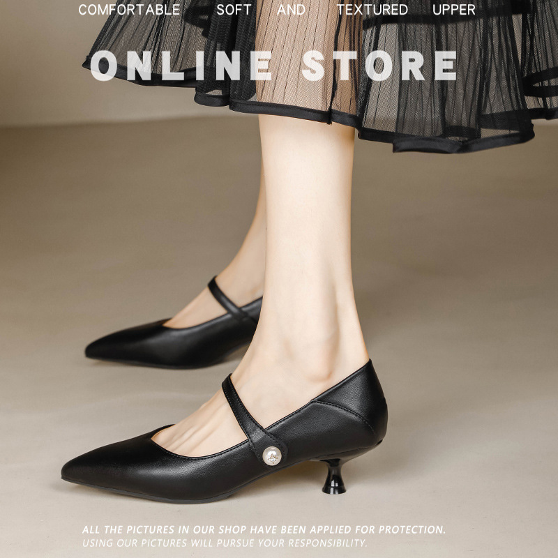 낮은 뒤꿈치 프랑스 뾰족한 발가락 향기로운 스타일 메리 부드러운 가죽 피곤하지 않은 전문 싱글 레이어 신발