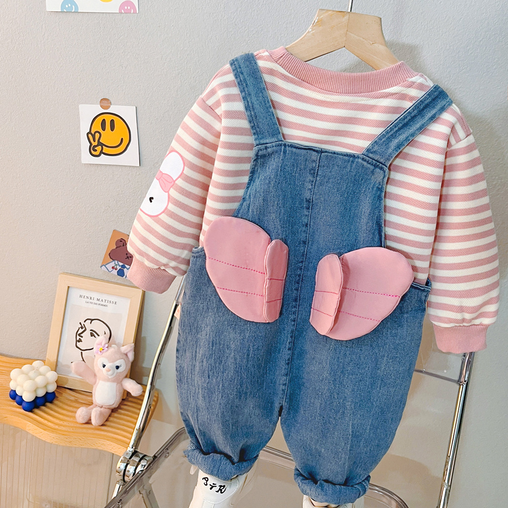 소년의 가을 세트 2024 새로운 서양식 어린이 불규칙한 데님 스트랩 투피스 세트 잘 생긴 아기 한국식스토어 가기