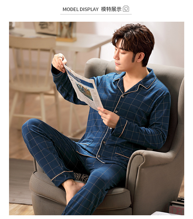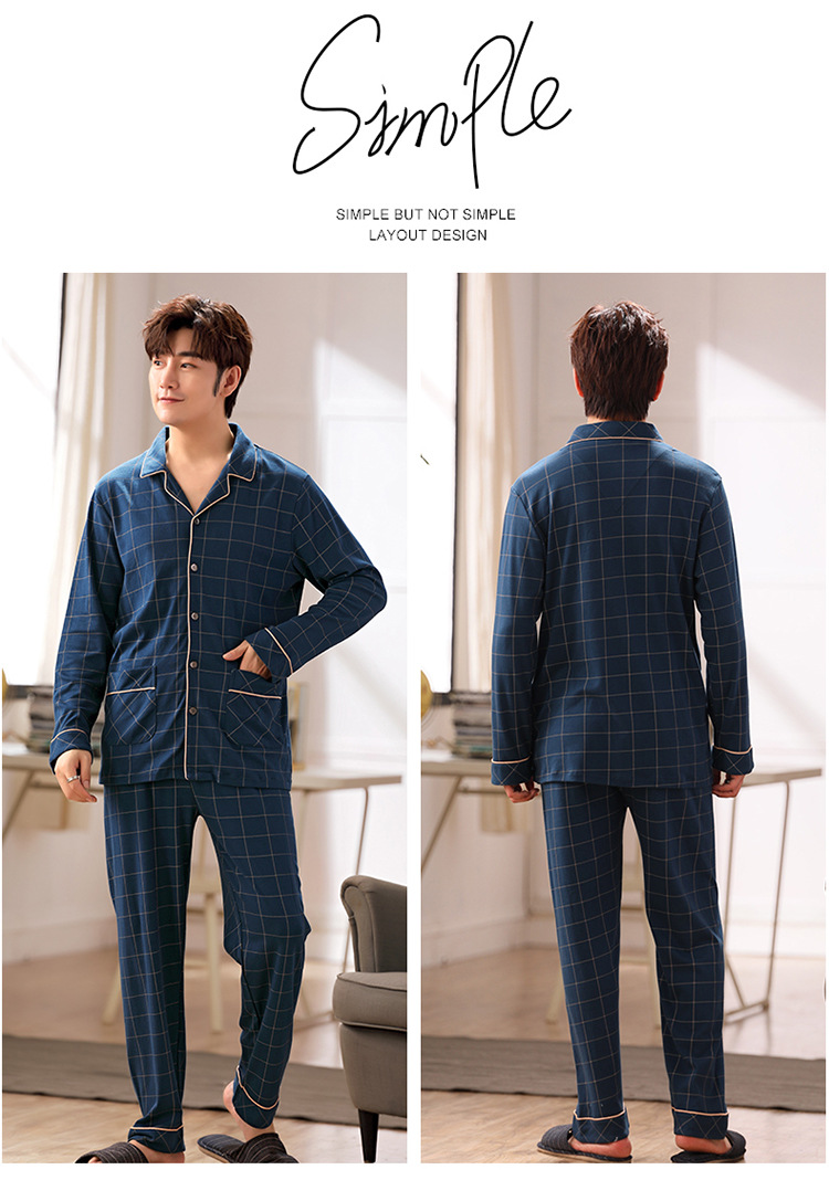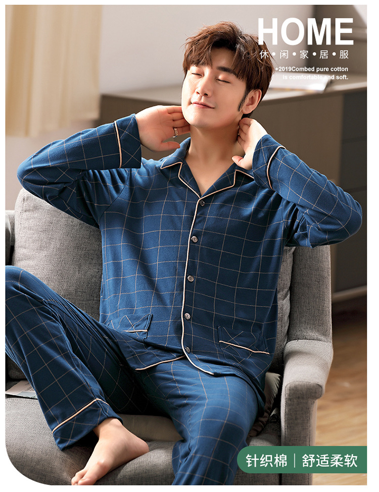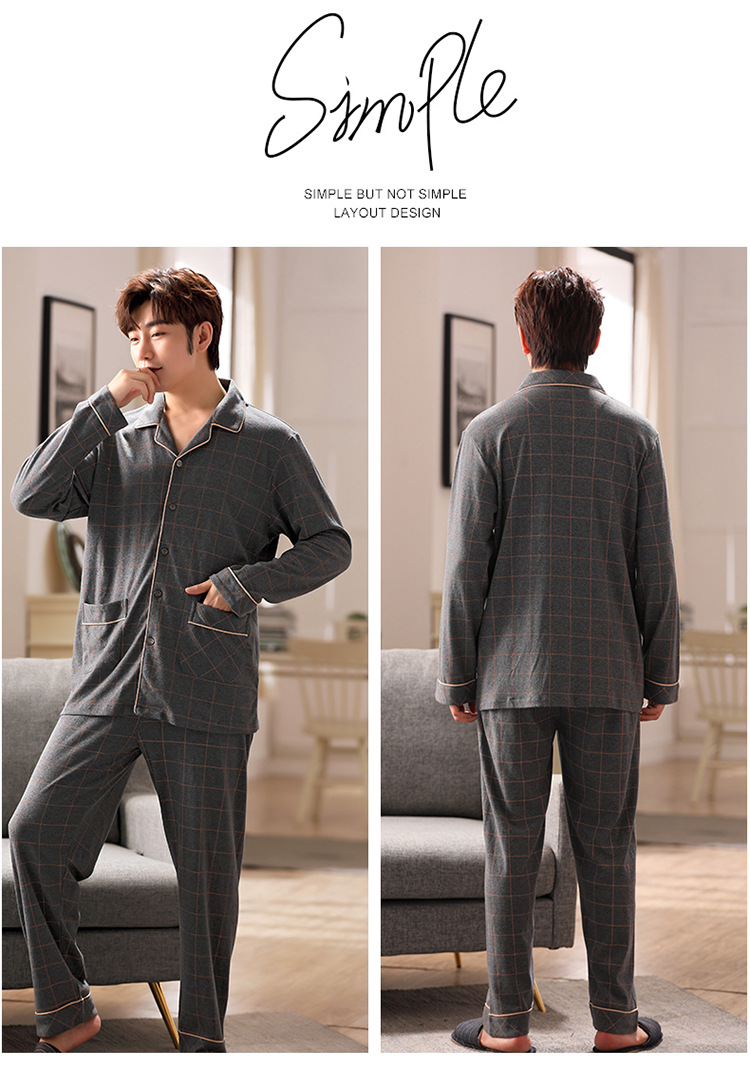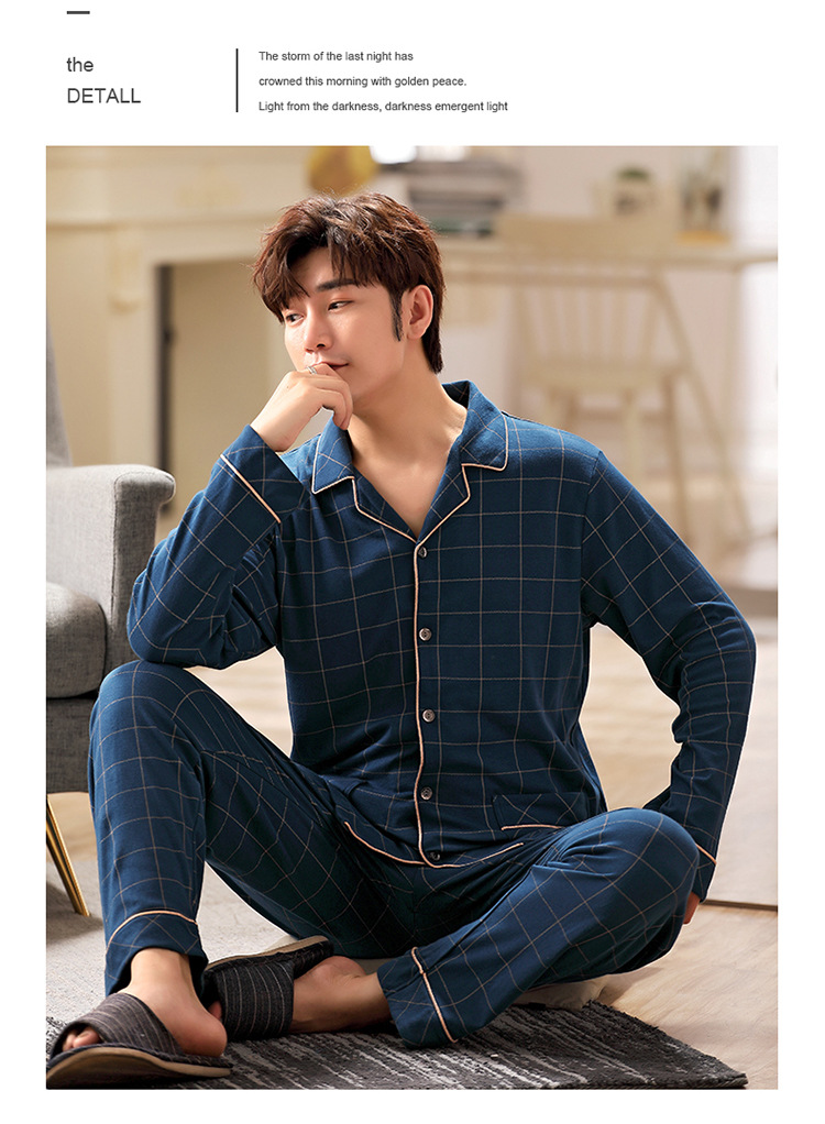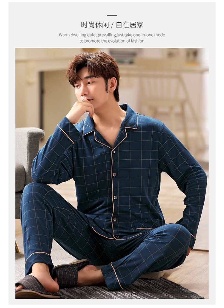 잠옷 남성 봄과 가을 긴팔 옷깃 중년 아버지 330kg 플러스 사이즈 가정옷 세트 남성이 밖에서 입을 수 있습니다.스토어 가기