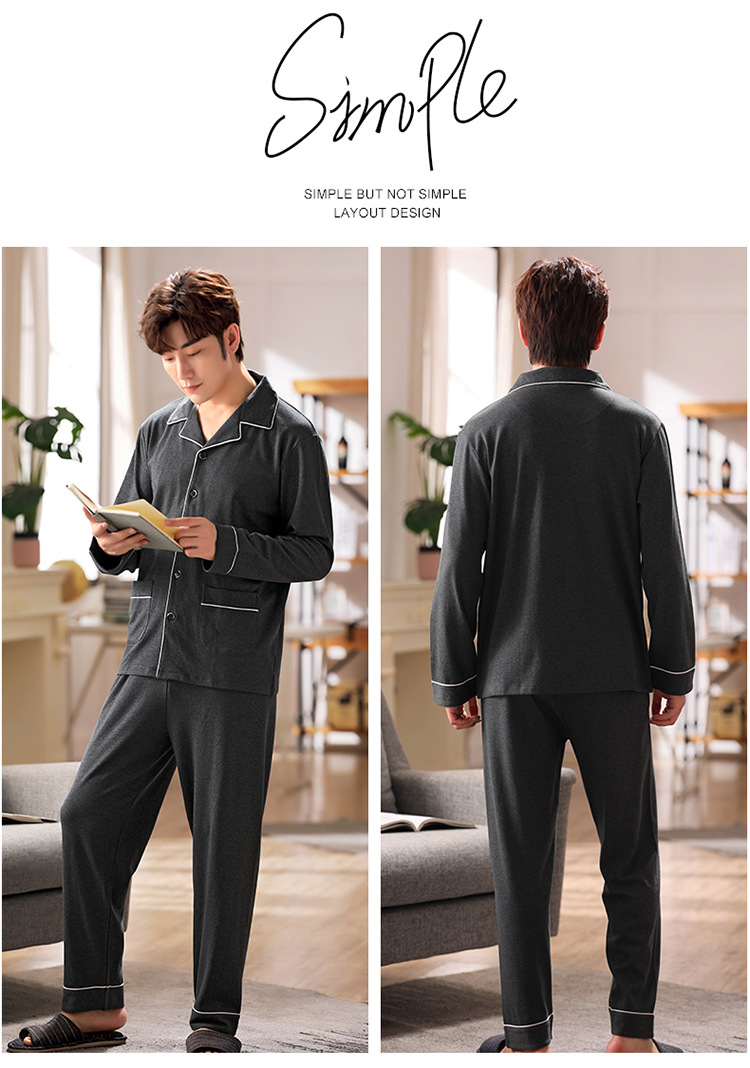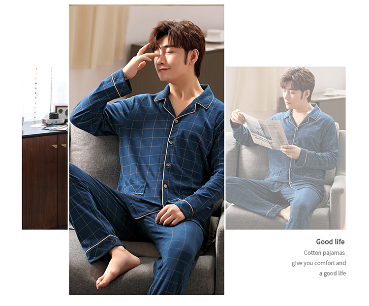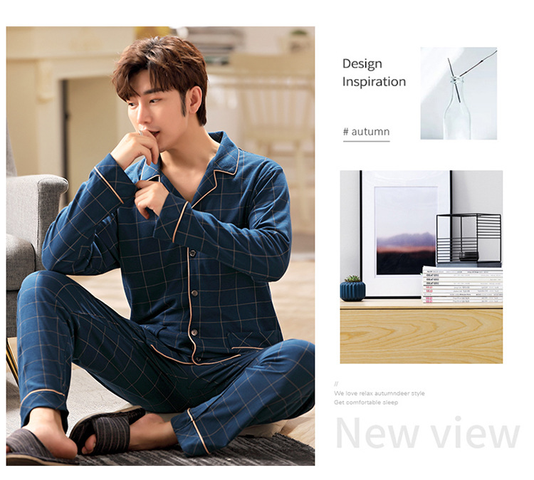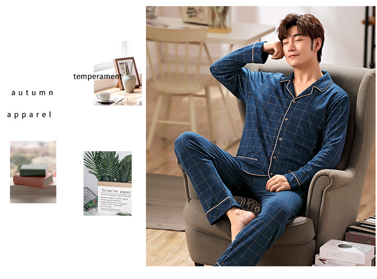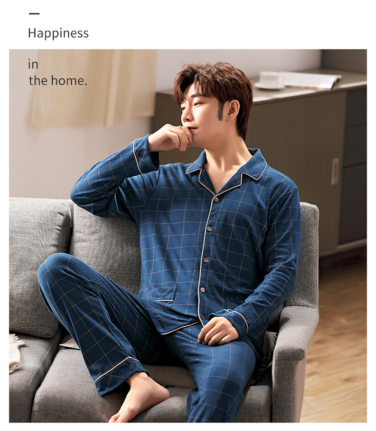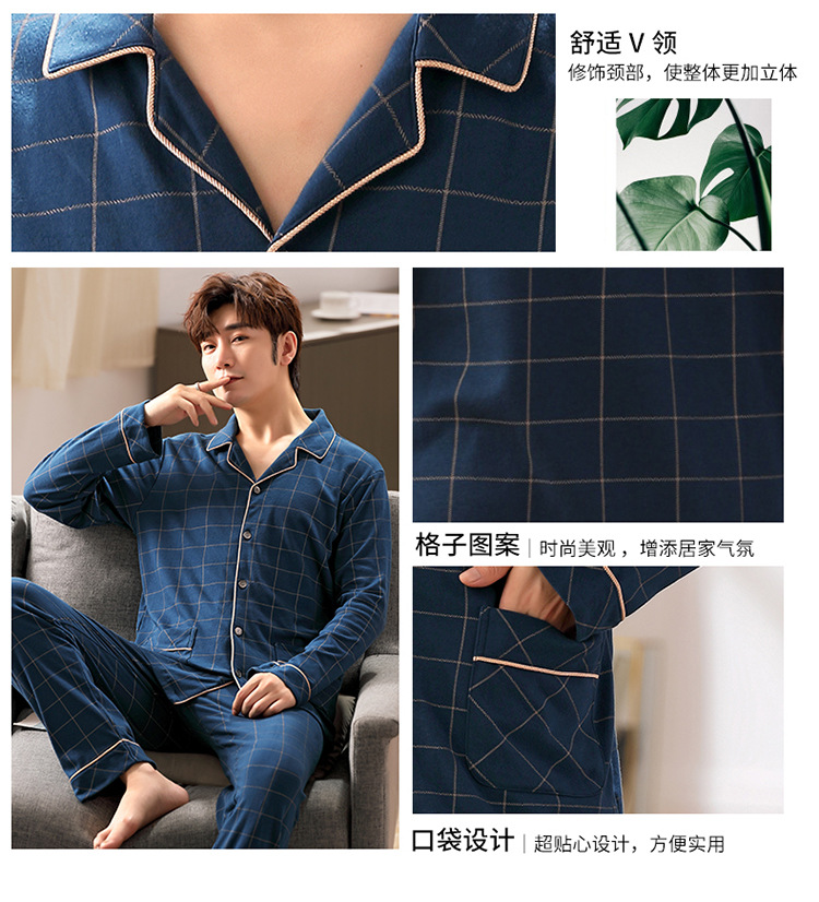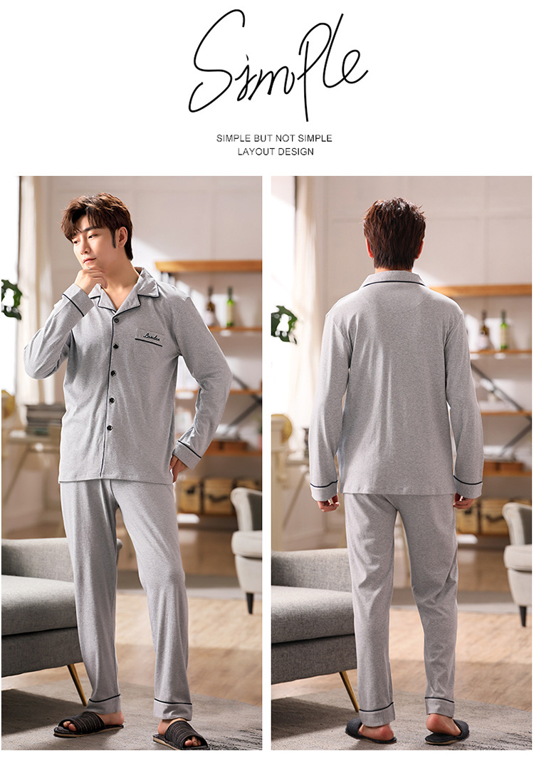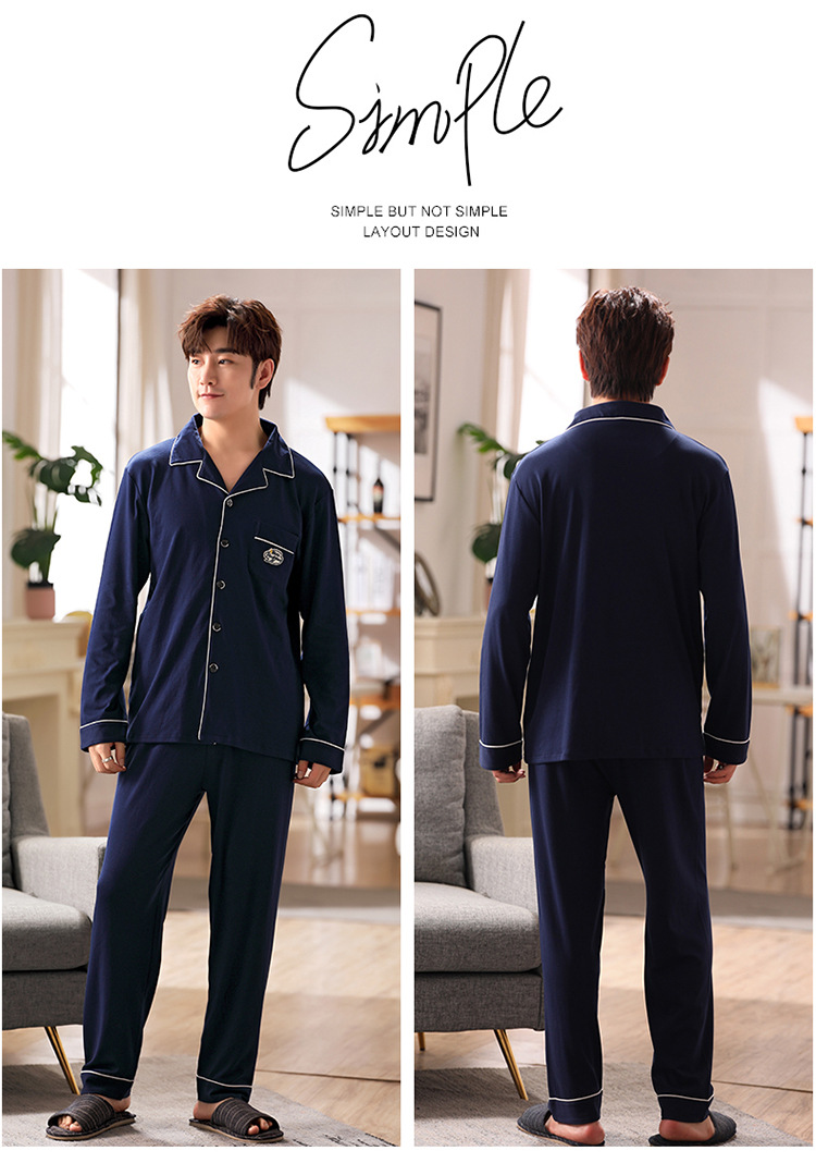 잠옷 남성 봄과 가을 긴팔 옷깃 중년 아버지 330kg 플러스 사이즈 가정옷 세트 남성이 밖에서 입을 수 있습니다.스토어 가기