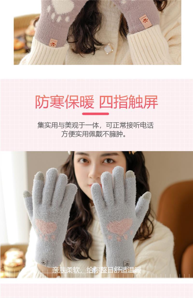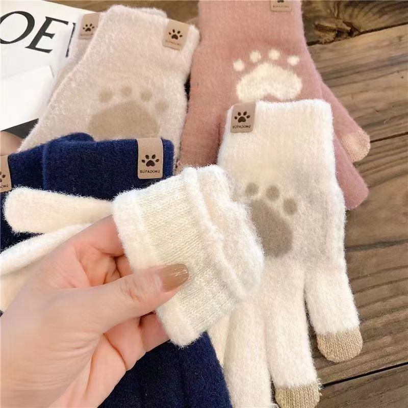 고양이 발톱 장갑 겨울 겨울 두꺼운 기모 귀여운 한국식 학생 따뜻한 방온 터치 스크린 니트스토어 가기