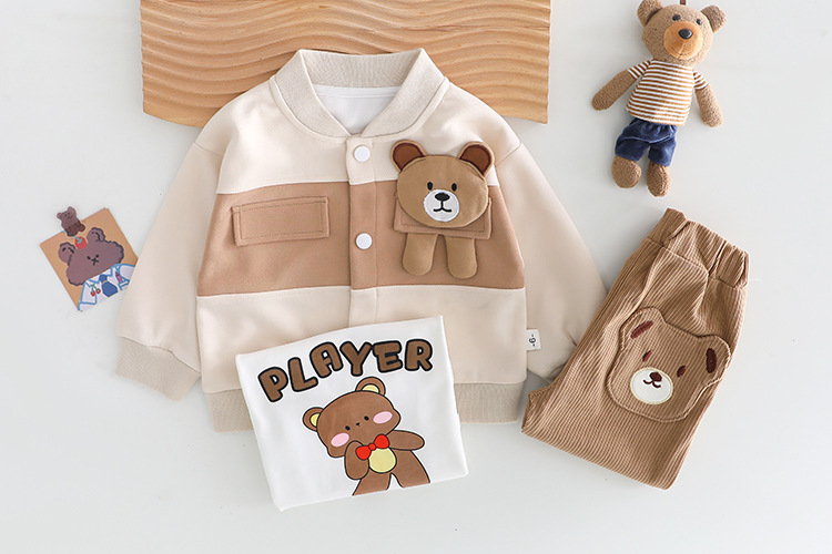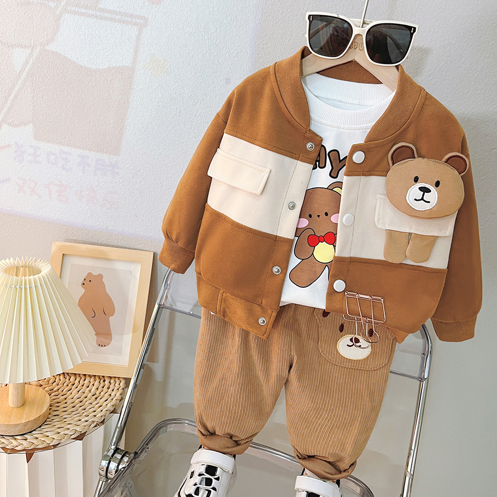 소년 세트 2024 가을 새로운 어린이 귀여운 코트 남자 아기의 봄과 가을 컬러 매칭 와이드 3 피스 세트 트렌디스토어 가기