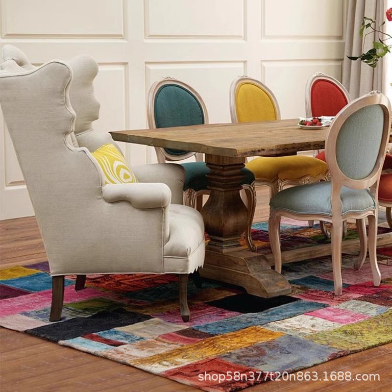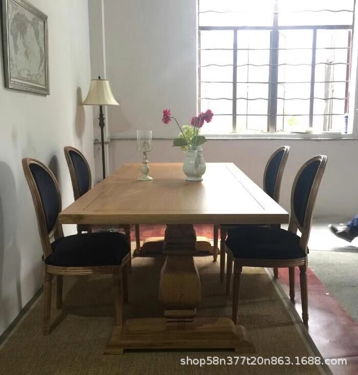 아메리칸 스타일 컨트리 빈티지 로마 칼럼 솔리드 우드 식탁 및 의자 조합 유럽 스타일 간단한 로그 대형 보드 오래 된 긴 식탁스토어 가기