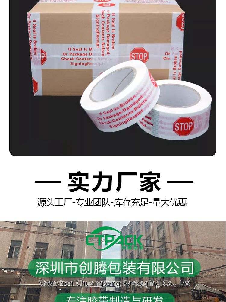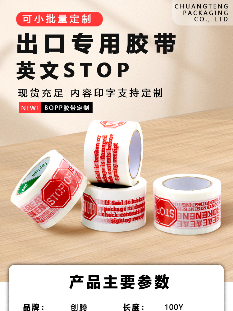 경고 테이프 영어 중지 백색 높은 접착 넓은 포장 테이프 도매 대외 무역 수출