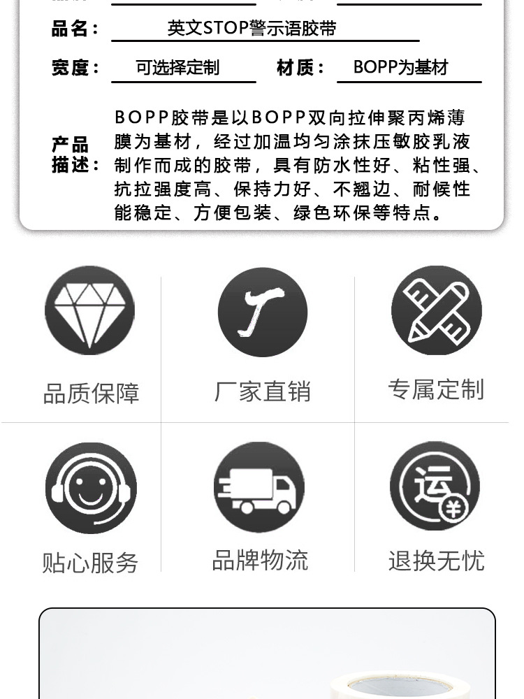 경고 테이프 영어 중지 백색 높은 접착 넓은 포장 테이프 도매 대외 무역 수출스토어 가기