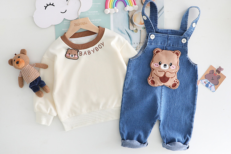 소년 세트 2024 새로운 봄과 가을 새 아기 옷 서양식 유아 편지 코 스트랩 투피스 세트스토어 가기