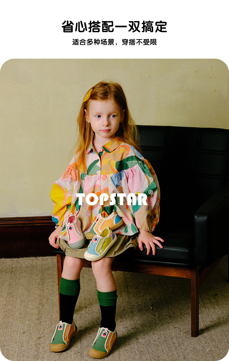 TOPSTAR 가을 신작 어린이 캔버스 신발 한국어 버전 부드러운 밑창 신발 유치원 실내 신발 2055