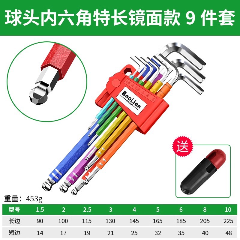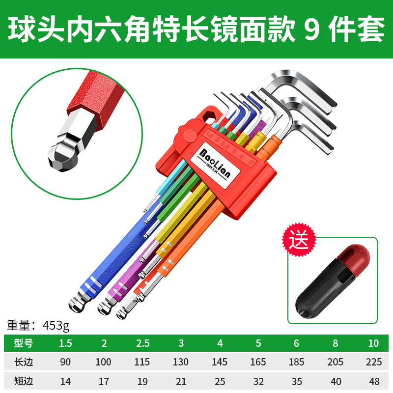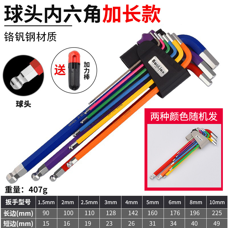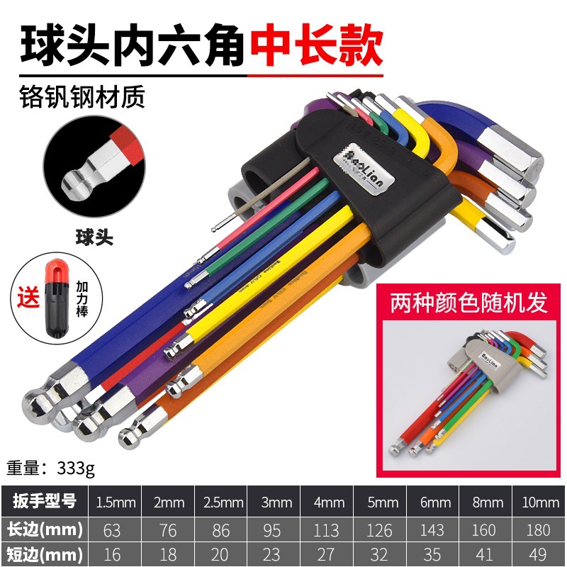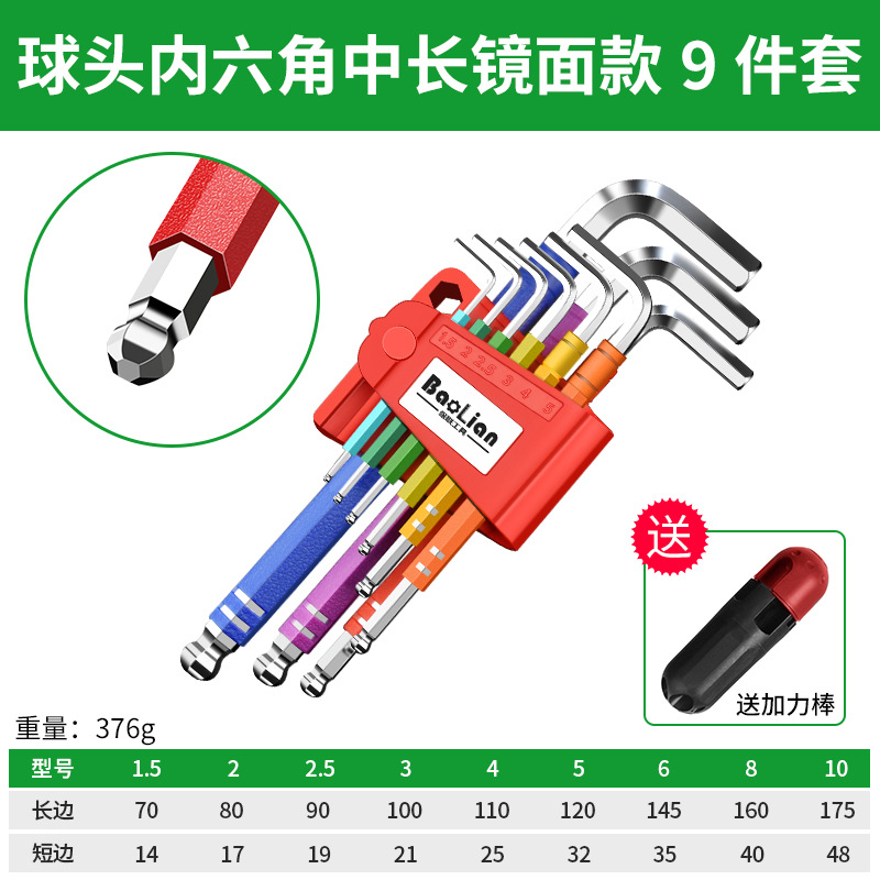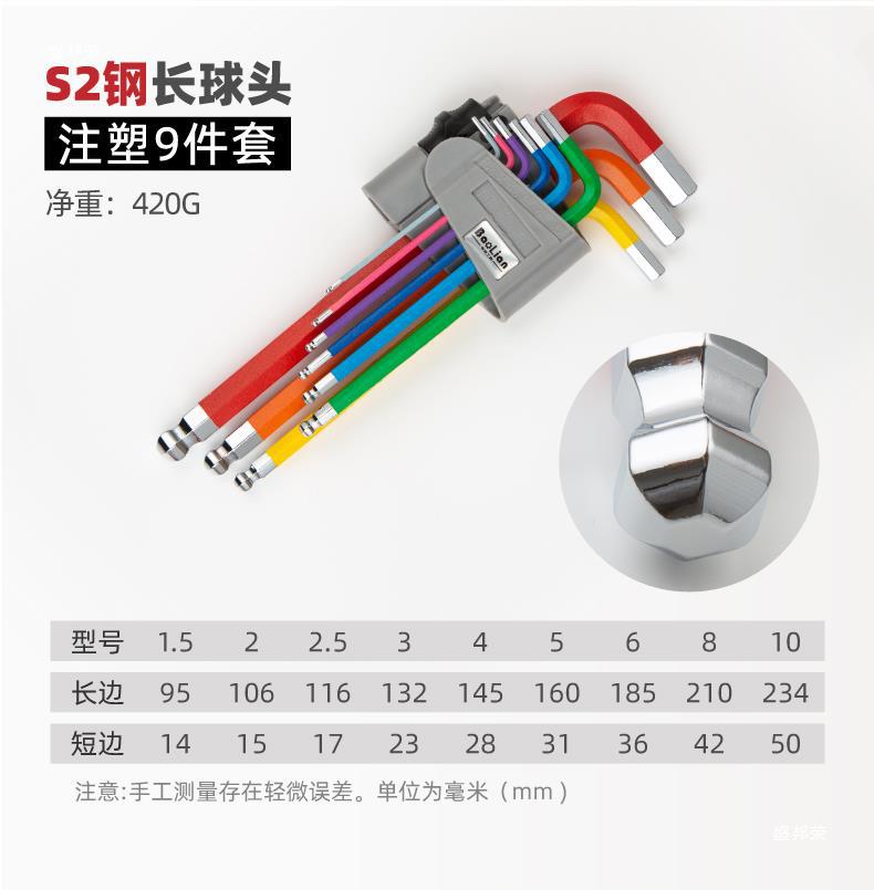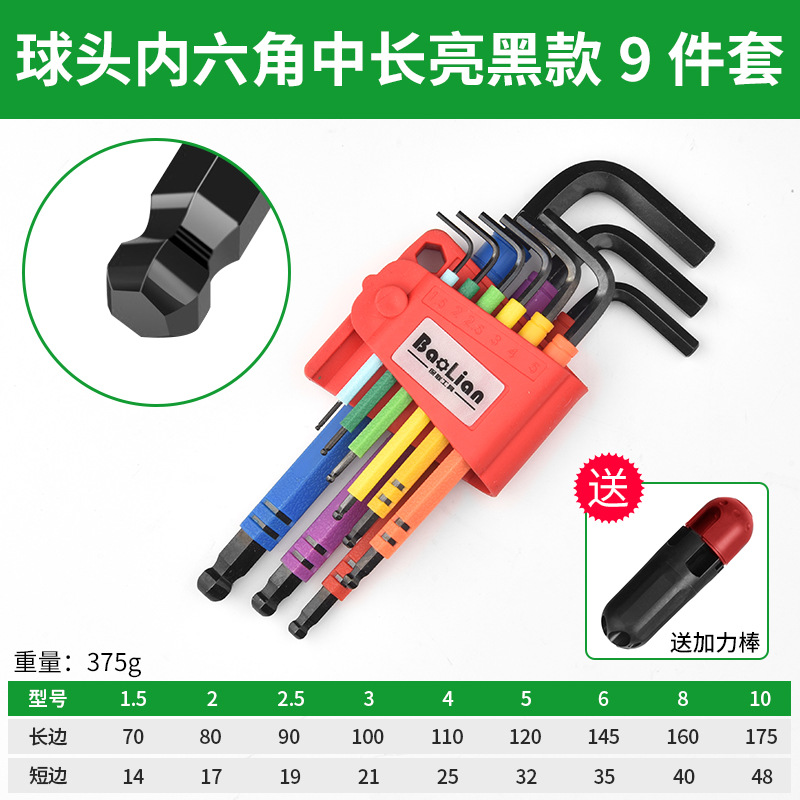 • 컬러 플라스틱 코팅 S2 중간 길이 볼 헤드 9개 세트