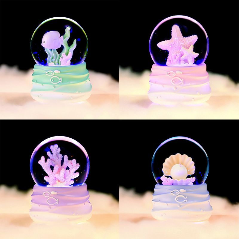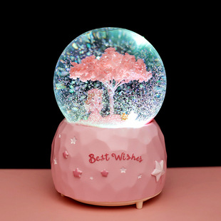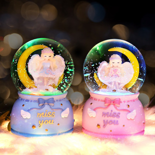新款月亮天使女孩水晶球音乐盒彩灯飘雪八音盒送学生礼品卧室摆件