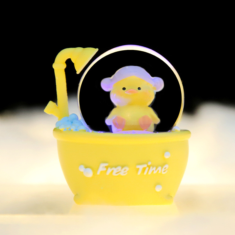 귀여운 만화 인형 오리 목욕 오리 미니 빛나는 크리스탈 볼 컴퓨터 데스크탑 작은 장식품 도매스토어 가기